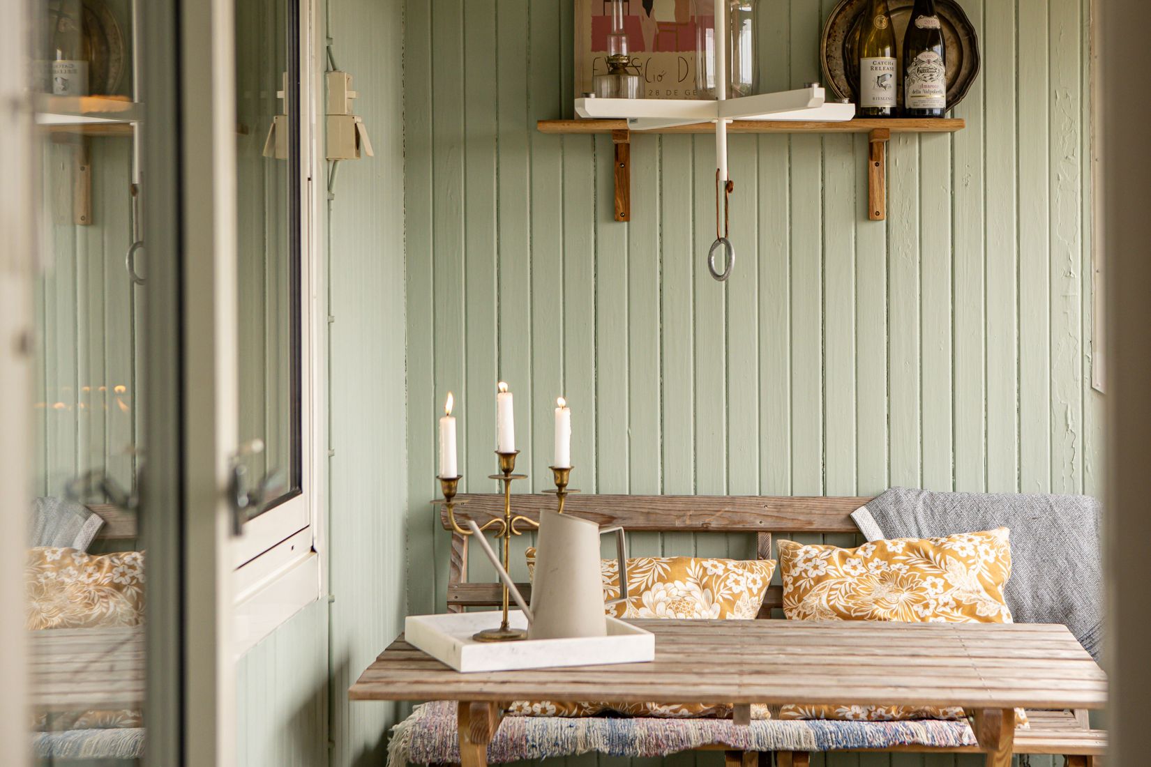 Det generösa vardagsrummet pryds av vacker fiskbensparkett och bjuder på direkt utgång till den inglasade balkongen – perfekt för såväl morgonkaffet som kvällsro.
