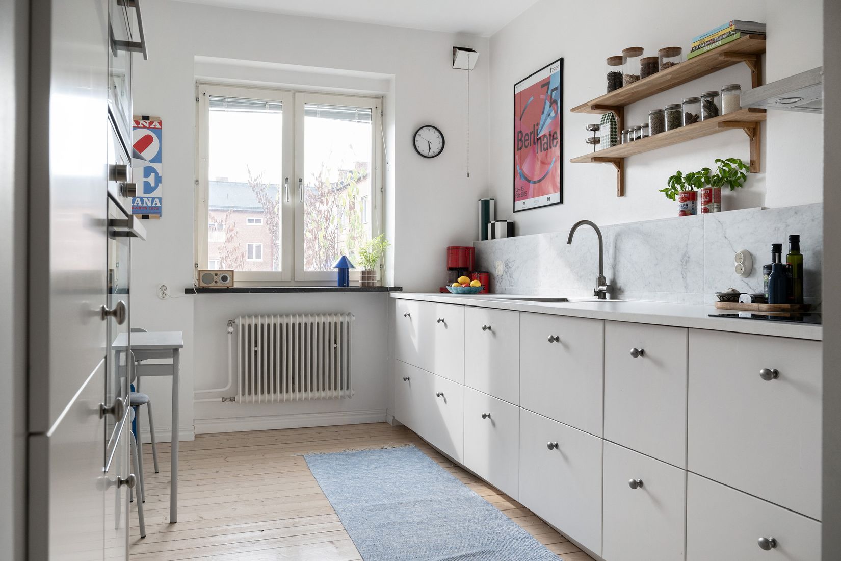 Köket är smakfullt renoverat och har plats för fyra runt matbordet – perfekt för både vardagsmiddag och middagsbjudningar. Det helkaklade badrummet har dusch, och vardagsrummet är både rymligt och ljust med direkt access till en mysig balkong med sol från eftermiddag till sen kväll. Sovrummet är rofyllt och väl tilltaget. Extra förvaringsutrymme finns i en rymlig klädkammare samt i två tillhörande förråd.