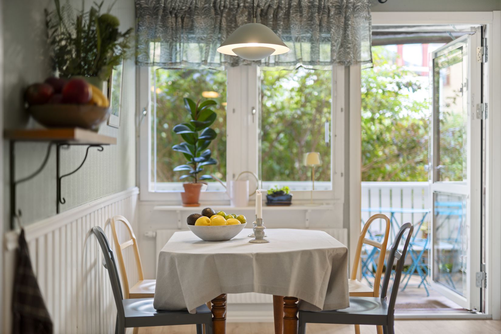 Lägenheten bjuder på generösa ytor och en väl genomtänkt planlösning där man även kan göra om den till en mindre 3:a. Luftigt vardagsrum med gott om plats för stor soffgrupp, hemtrevligt kök med matplats och utrustat med spis, ugn, kombinerad kyl/frys, diskmaskin samt gott om bänkyta och förvaring i skåpen. Här finns utgång till den skyddade uteplatsen samt ingång till förråd/ev tvättrum med klinkergolv (inga maskiner finns där idag, dock finns föreningens tvättstuga intill lägenheten). Utöver detta så erbjuder boendet på ett stort sovrum med fönster åt två håll - detta rum kan enkelt avdelas till två! Det är redan två dörrar till rummet. Välkomnande hall med hatthylla samt ingång till renoverat badrum med badkar. Lägenhetsinnehavaren har även tillgång till ett vindsförråd.