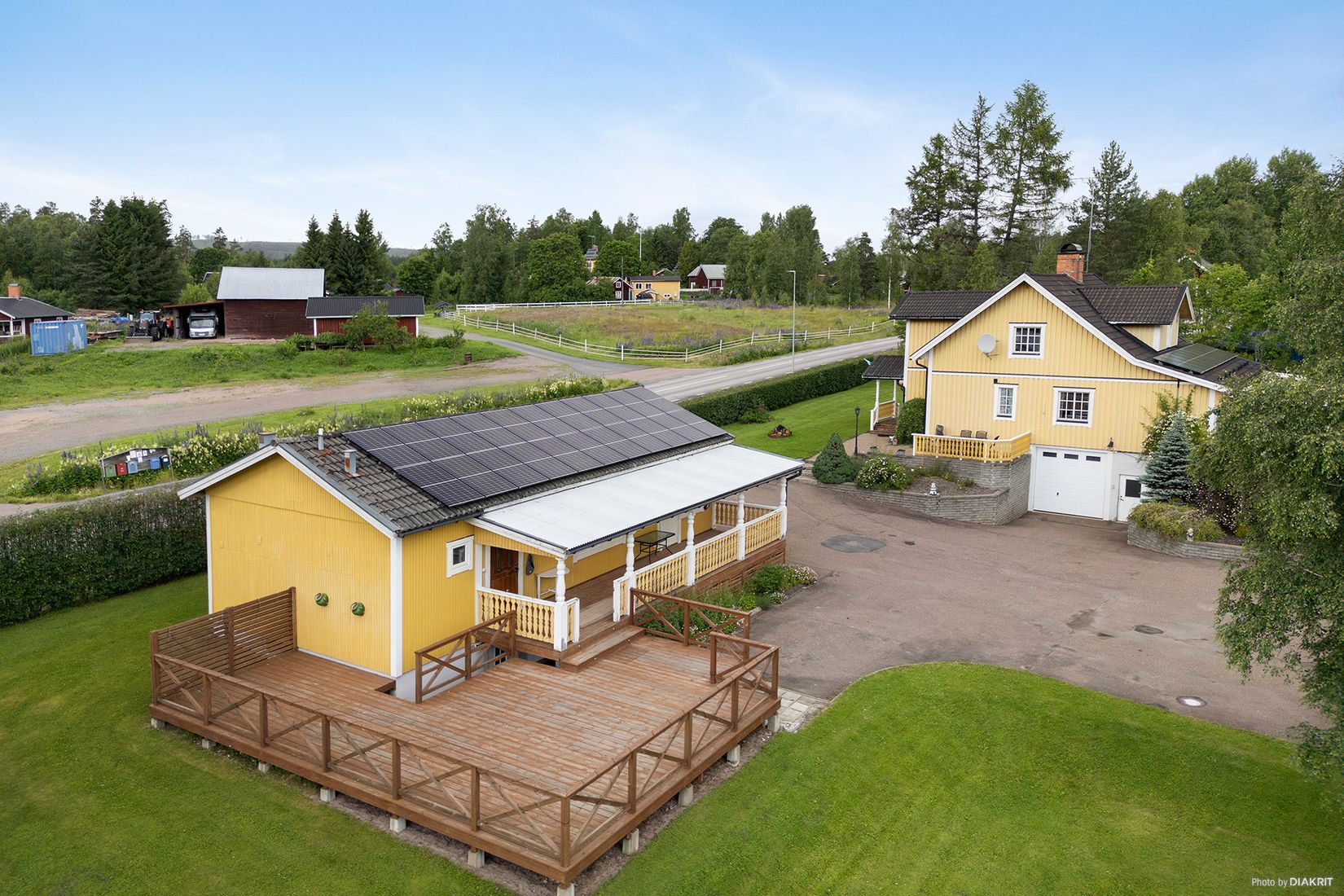 Det mindre huset är friliggande och utrustat med ett stort soldäck med sjöutsikt – en perfekt plats att njuta av solnedgångar och sommarfrukostar. Huset passar utmärkt som gästhus, uthyrningsbostad eller för generationsboende.