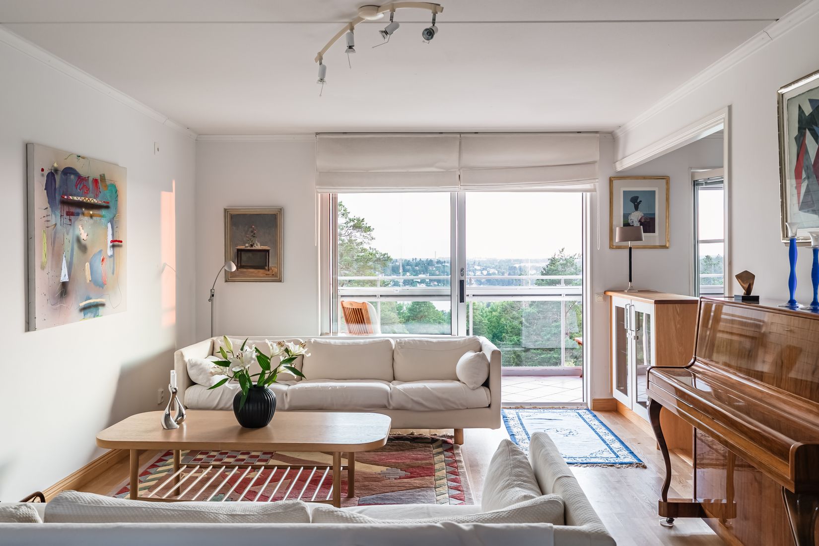Högst upp med milsvid utsikt över Edsviken får du njuta av solen från morgon till kväll, med hiss hela vägen upp och närhet till natur, badplatser, kommunikationer och service. Välkommen till Sidensvansvägen 42, där livet på höjden möter vattnets lugn. Här bjuds du på en vy över trädtoppar och vatten som blir din dagliga tavla, medan solens strålar följer dig från morgonkaffet till kvällens sista ljus.