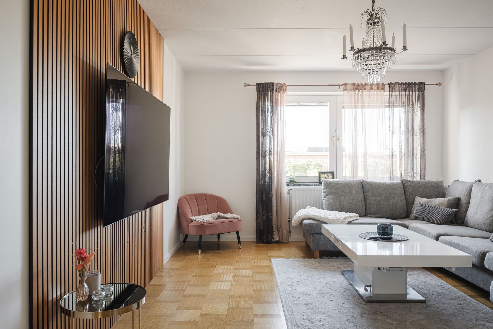Planlösningen är genomgående och välplanerad med en välkomnande entréhall, tre sovrum i bra storlek samt ett rymligt vardagsrum som tillsammans med köket binds samman i en halvöppen och social lösning. Från köket nås en inglasad balkong i soligt söderläge - perfekt för både avkoppling och umgänge. Köket är stilrent och funktionellt med vita skåpluckor, god förvaring och moderna vitvaror. Badrum och separat wc är helkaklade i tidlösa materialval med vitt kakel och mörkgrått klinkergolv där båda renoverades av föreningen i samband med stambytet. Det fullutrustade badrummet har även ett fönster tack vare bostadens eftertraktade gavelläge.