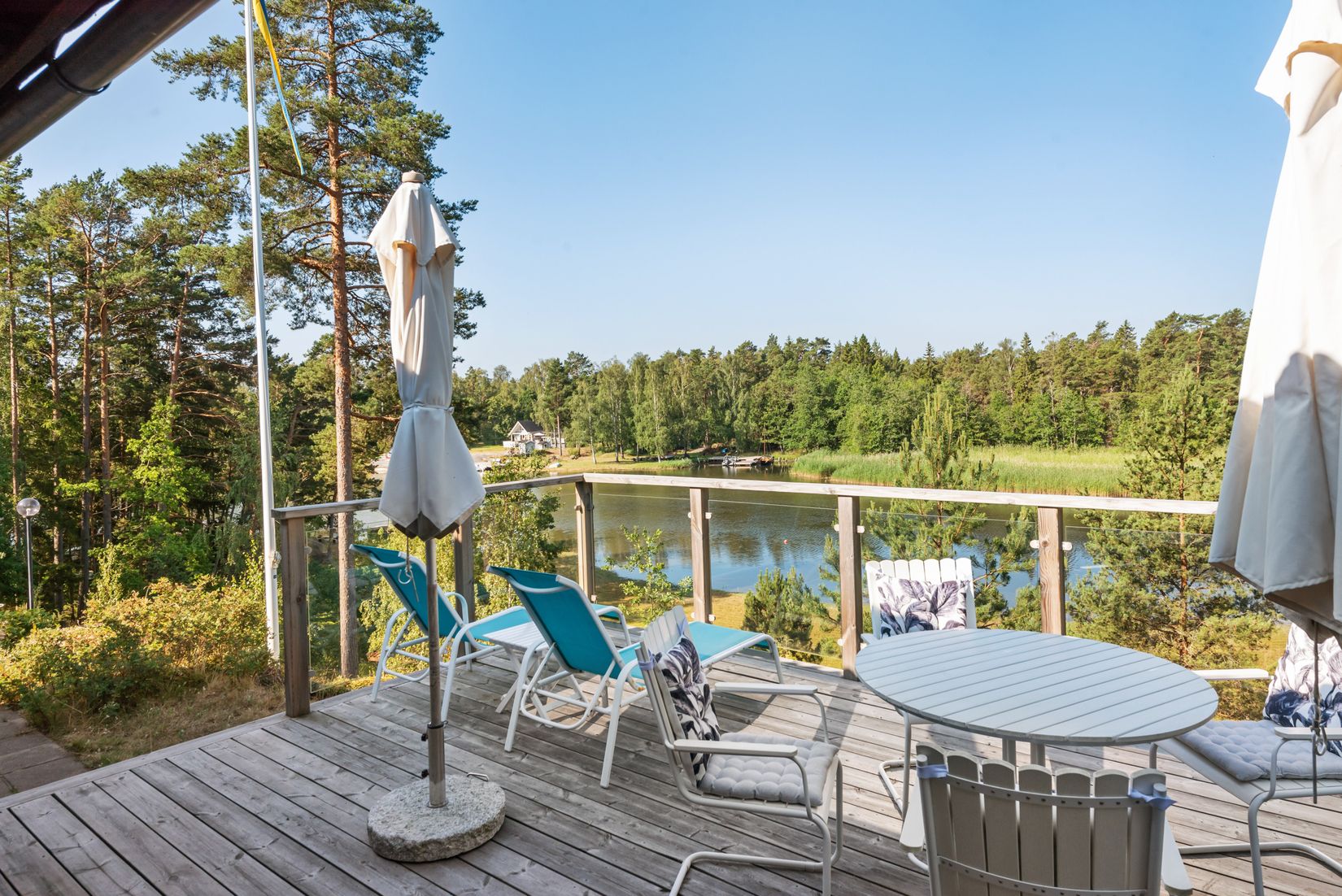 Cirka 50 meter från huset ligger den egna bryggan med båtplats, perfekt för bad, båtliv och långa sommarkvällar vid vattnet.