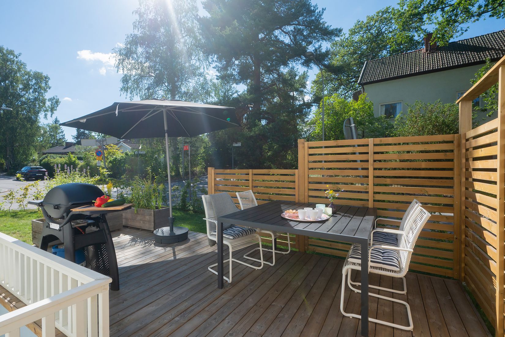 Utanför väntar en fantastisk altan med sol hela dagen, samt en grönskande gräsmatta - en perfekt plats för avkoppling eller sociala stunder.