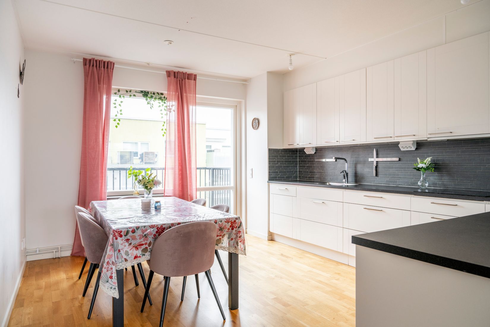 Varmt välkomna högst upp i huset till denna spatiösa 2:a (möjlig 3:a) med dubbla balkonger och ett rikligt ljusinsläpp! Här finner du det perfekta boendet för såväl singeln som det moderna paret. Denna bostad erbjuder en öppen, social planlösning mellan kök och vardagsrum, nyproduktionsstandard och en toppfräsch atmosfär. Bostaden har allt man kan önska sig med generösa arbetsytor och bra förvaring i kök samt badrum med goda tvättmöjligheter tack vare både tvättmaskin och torktumlare. Från bostadens kök nås balkong i öst med sol under morgon fram till lunch, eftermiddags och kvällssolen finner vi på balkongen som nås från vardagsrum. Så länge solen skiner så gör den det på en av denna bostads balkonger. Slutligen kan erbjudas sovrum med bra förvaring i både klädkammare och inbyggda garderober.