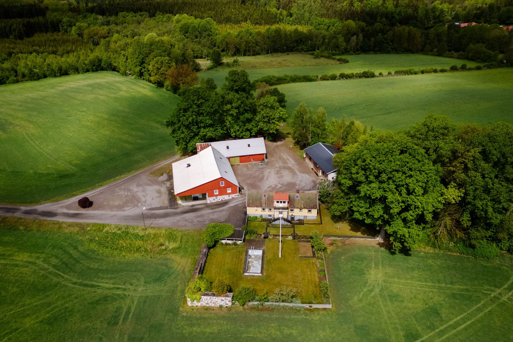 Detta är en gård med stora ytor och oändliga möjligheter – oavsett om du söker ett lantligt paradis, vill driva verksamhet eller skapa ett generationsboende.