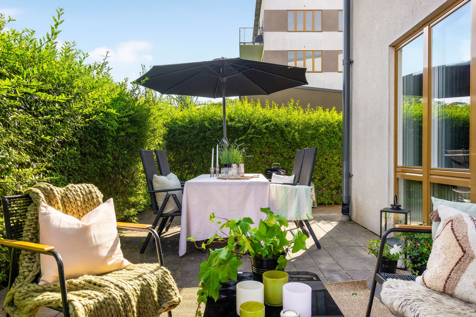 Välkommen till ett hem som kombinerar stilfull design med hög komfort och en genomtänkt planlösning. Här möts du av en generös uteplats i två väderstreck – stenlagd och med plats för både loungedel, matbord och odlingslådor. Morgonsolen värmer på ena sidan och under sommarkvällarna kan du njuta av solens sista strålar på den andra.