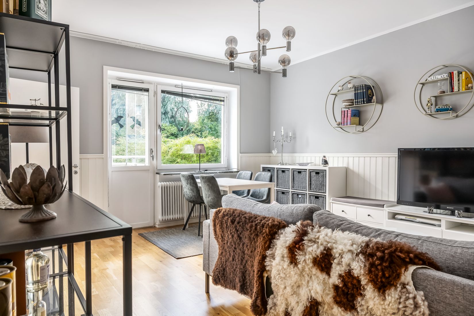 Här får du ett ljust och stilrent kök för dina kulinariska äventyr, ett vardagsrum med plats för både soffhäng och långmiddagar.