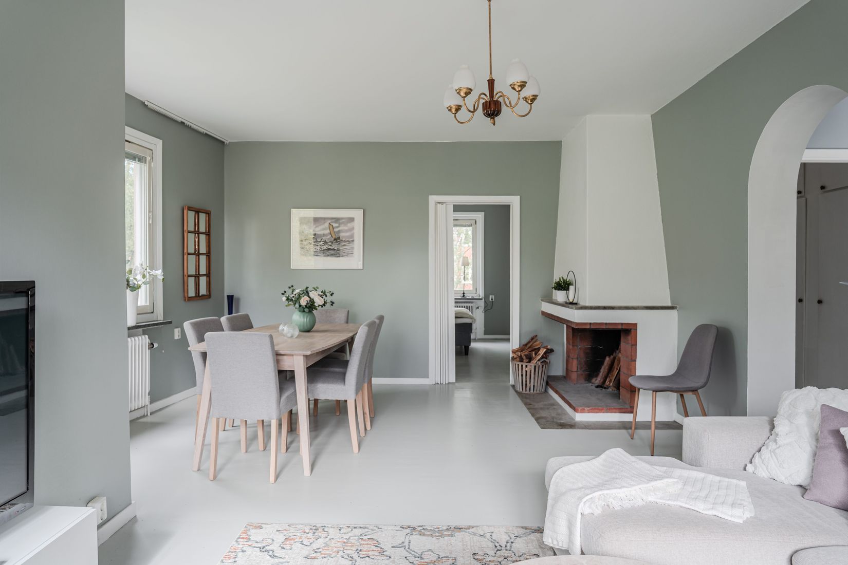 Det nyrenoverade köket är smakfullt utformat med gott om förvaring och arbetsyta, samt en mysig matplats intill fönster. En trivsam plats för både matlagning och långa söndagsfrukostar. Vardagsrum och matrum ligger i anslutning till varandra och bildar tillsammans stora, inbjudande sällskapsytor. Här finns plats för både soffgrupp och matsalsmöbel, och den stämningsfulla braskaminen bidrar med både värme och atmosfär. Från vardagsrummet nås en av bostadens två balkonger – båda med lugnt läge mot grönskande innergård.