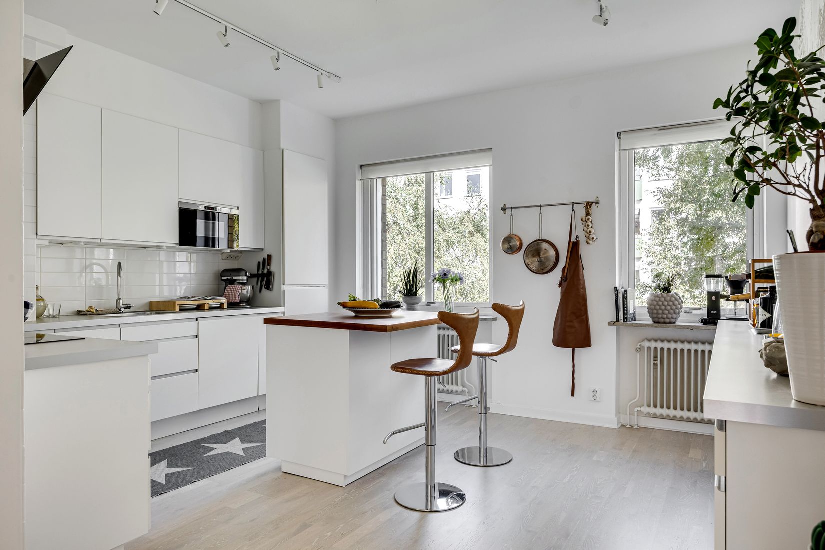 Det stora och smakfullt renoverade köket är bostadens höjdpunkt, här finns det gott om skåps- och bänkyta och rejält med utrymme för större middagssällskap. Badrummet är likaså renoverat i stilsäkra materialval som går i vitt och svart och har både duschhörna och gott om förvaring. Sovrummet är väl tilltaget i storlek och ligger in mot den lugna innergården i svalt norrläge.
