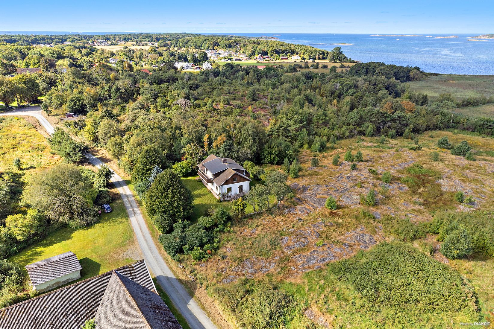 Lantbruksfastighet invid Klosterfjorden i tre skiften på ca 10 ha, varav 5,8 ha åkermark och 3,2 ha betesmark .