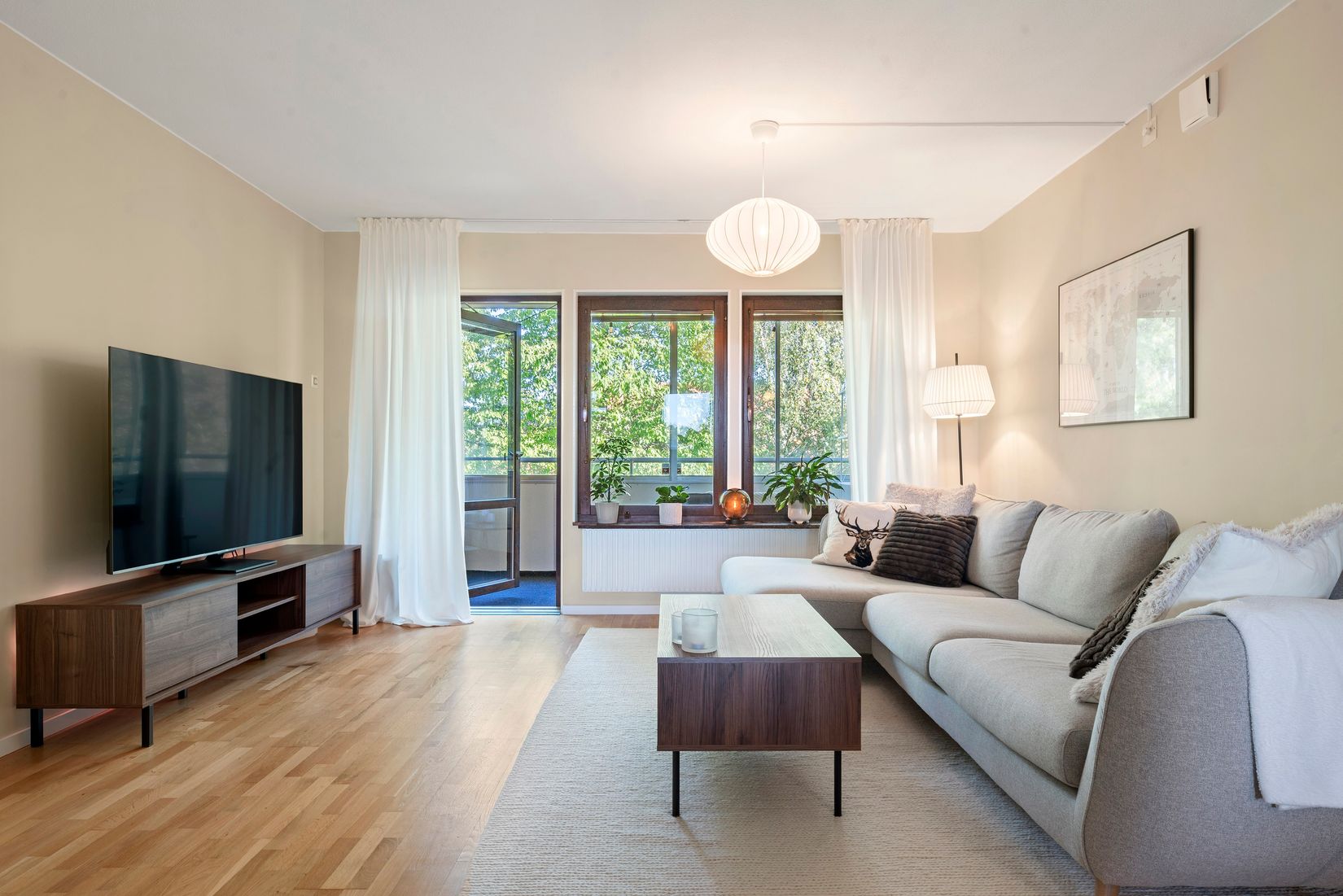 Planlösningen välkomnar er med en rymlig hall med gott om plats. Köket, matplatsen och vardagsrummet binds samman i en delvis öppen planlösning som skapar en social och trivsam atmosfär. Köket är stilrent och praktiskt utformat samt utrustat med diskmaskin. Vardagsrumsdelen är generös och rymmer både plats för matgrupp och soffgrupp. Härifrån nås den stora balkongen i fritt läge med utsikt över grönområden. Då balkongen är inglasad kan den nyttjas som ett extra rum större delen av året och blir en härlig förlängning av bostaden och en självklar plats för avkoppling eller middagar. Vidare finns ett rymligt sovrum med plats för dubbelsäng och möjlighet till god förvaring. Sovrummet har fönster mot grönområdet vilket bidrar till en lugn och behaglig känsla. Badrummet är rymligt och här finns bekvämligheter som tvättmaskin samt plats för ytterligare förvaring, vilket gör vardagen både enklare och mer funktionell.