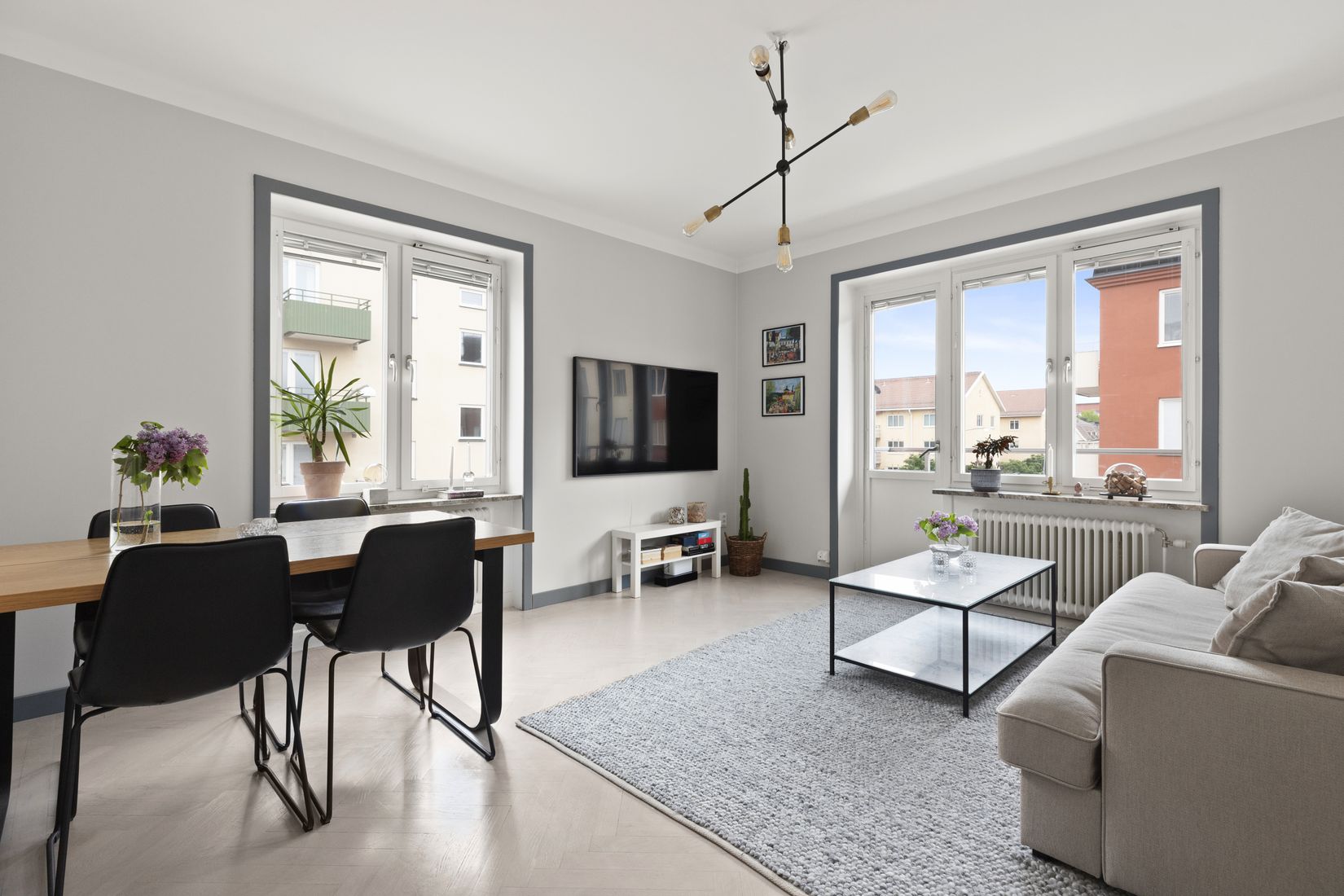 Varmt välkomna till denna välplanerade gaveltvåa disponerad på 58 kvm med väldigt låg avgift! Lägenheten har hela gaveln på huset med fönster i tre väderstreck vilket ger lägenheten ett härligt ljusinsläpp och tillsammans med takhöjden om ca 2,70 en härlig rymd. Rymligt vardagsrum med både plats för stor soffgrupp och matgrupp. Från vardagsrummet nås även bostadens västliga balkong där det går att avnjuta sol från eftermiddag och utöver kvällen. Lägenheten har ett genomgående golv i fiskbensmönster i sovrum, vardagsrum och hall. Sovrummet har en garderobsvägg i samma kulör som väggfärgen, industriglasvägg med dubbeldörrar som skänker ljus till passage och hall. Det exklusiva köket är fullutrustat, har kompositstenskiva och ett charmigt plankgolv samt även här plats för matgrupp. Badrummet är helkaklat från stambytet i stilsäkra färger, det är även förberett för installation av tvättmaskin.