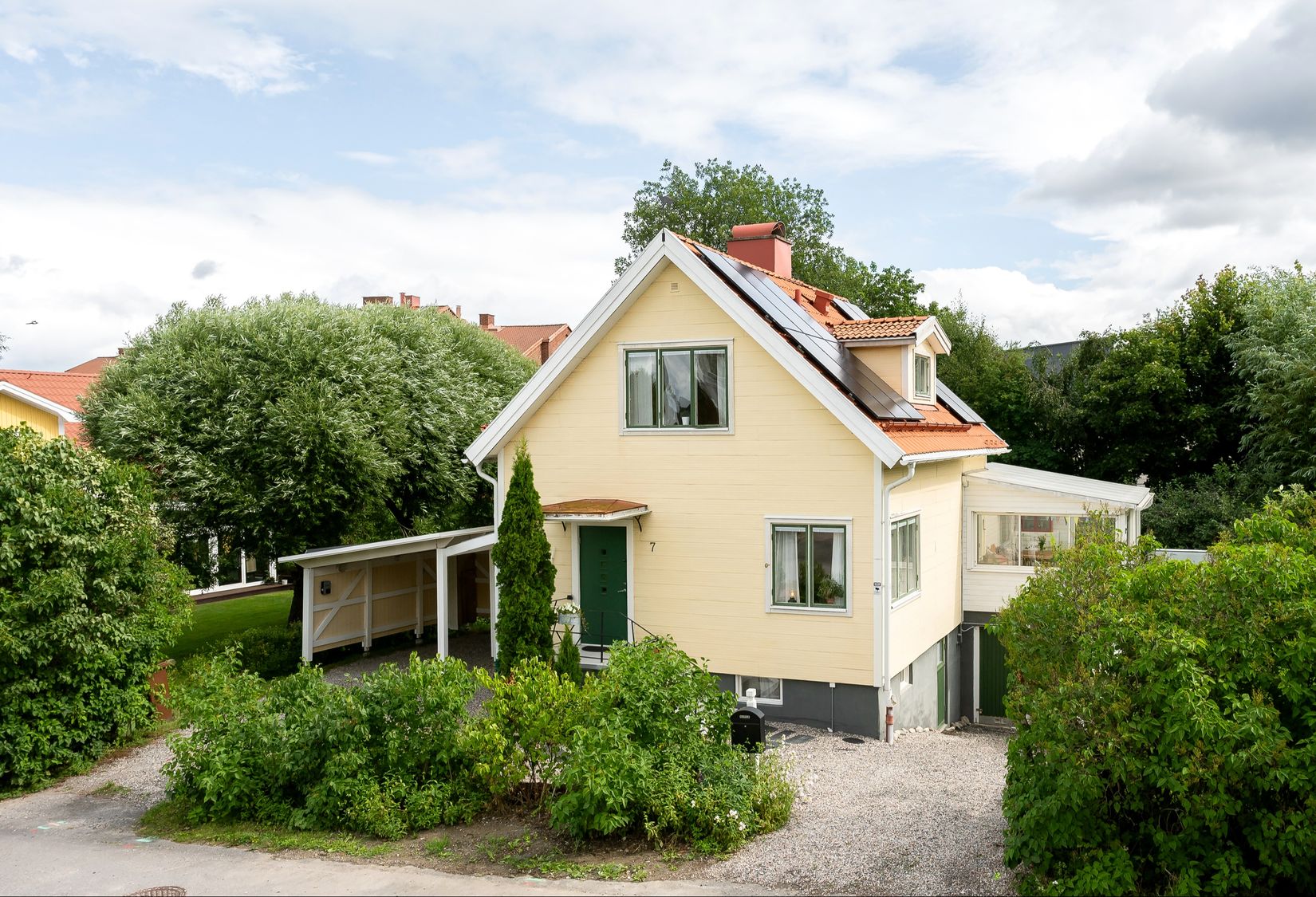 Mycket charmigt och välskött hus med fint solläge precis på gränsen mellan Östermalm och Skönsmon. Mycket skön känsla i huset som är byggt på 40-talet samtidigt som stora renoveringar genomförts senaste åren, t.ex. takbyte, dränering, inglasat uterum, m.m. Delvis ombyggt 2008 till nuvarande planlösning där man har tre sovrum på övre plan. Komplettering av solcellsanläggningen gjordes 2021, något som håller nere driftskostnaderna. Huset värms upp med lättskött och ekonomisk fjärrvärme och har en underhållsfri fasad av aluminiumplåt. I och med att man inte behöver lägga tid på utvändigt underhåll kan man istället njuta av spabadet på tomten eller en mysig brasa inomhus.