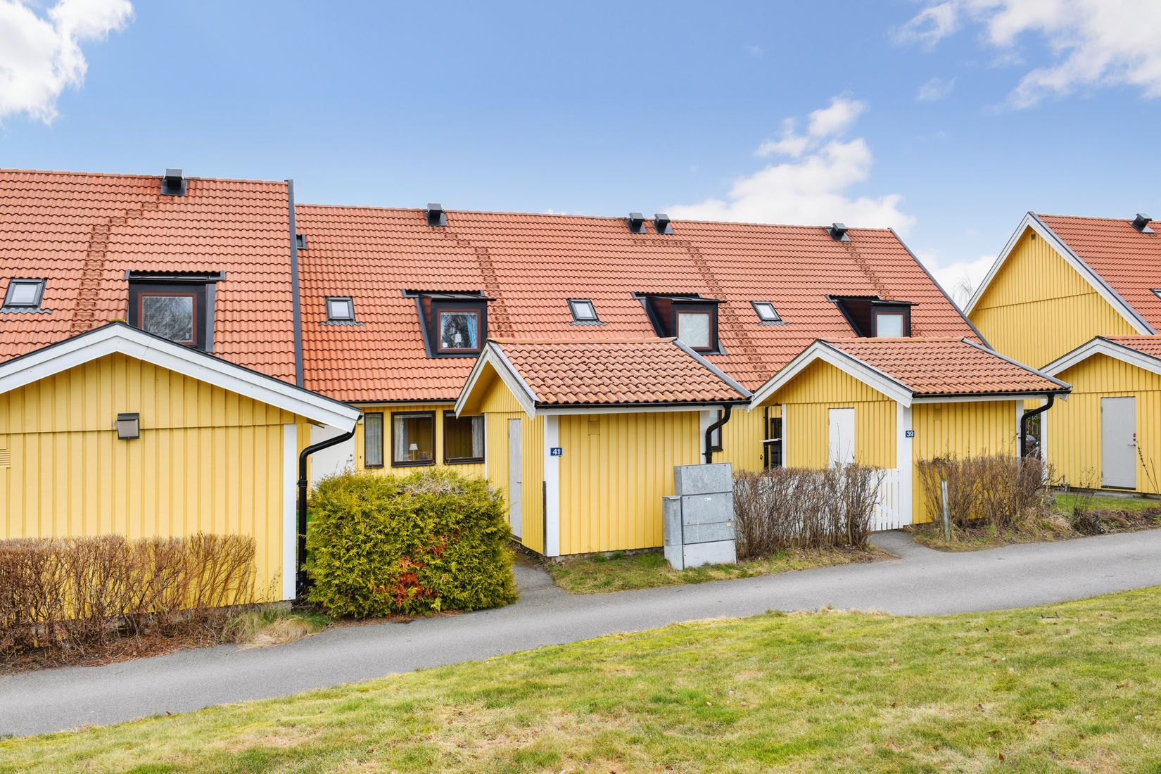 Entréplan rymmer kök och hall i öppen planlösning, tvättstuga, duschrum och vardagsrum och ovanvåningen bjuder på tre sovrum, badrum och praktisk klädkammare. Lägenheten har en bra planlösning med de sociala ytorna på bottenplan och sovrummen en våning upp. Ett förråd på framsidan hör också till.