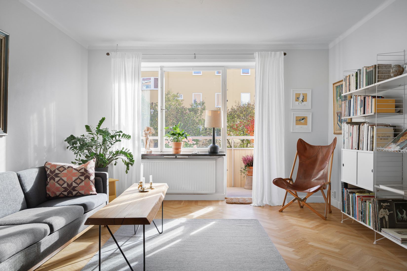 Bostaden har en genomtänkt planlösning där varje kvadratmeter används på bästa sätt. I den sociala delen löper en vacker fiskbensparkett genom hela ytan, vilket skapar en varm och elegant känsla. Det rymliga vardagsrummet bjuder på gott om plats för både soffgrupp och umgänge och härifrån nås den trivsamma balkongen som vetter mot innergården. Intill vardagsrummet finns ett charmigt halvrum med tidstypiska skjutdörrar, en perfekt plats för matsalsbord, hemmakontor eller gästrum. Köket är modernt med vita släta luckor, goda arbetsytor och plats för ett matbord. Sovrummet är rofyllt med bra förvaring i garderober och det helkaklade badrummet är fräscht och praktiskt utformat.