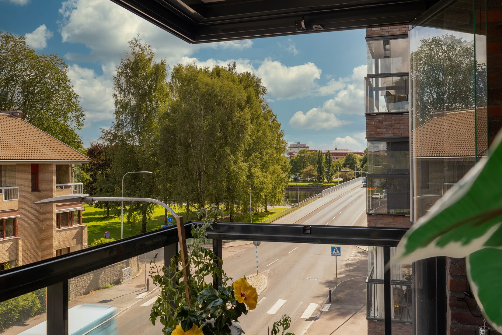 Denna bostadsrätt är ett elegant hem med genomgående hög kvalitet. Köket är stilrent och fullt utrustat med bekvämligheter som fullstor kyl och frys, induktionshäll, diskmaskin, vinkyl samt inbyggd ugn och mikro i arbetshöjd. Köket är i öppen planlösning med vardagsrummet, vilket tillsammans med de stora fönsterpartierna ger ett härligt ljusinsläpp. Från vardagsrummet leder en skjutbar glasdörr ut till en rymlig, inglasad balkong med infravärme och öppningsbara fönsterpartier.