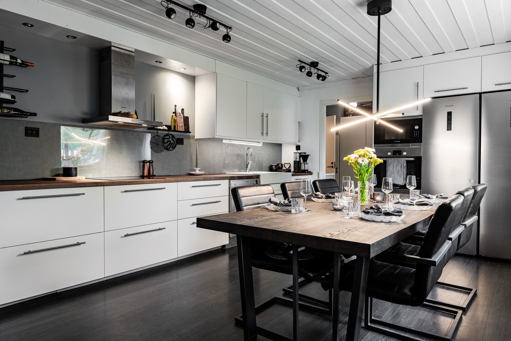 Huset rymmer tre rymliga sovrum, ett ljust och modernt kök, en toalett och ett badrum som helrenoverats 2020. Planlösningen är genomtänkt och skapar en trivsam känsla av rymd. Det anslutande garaget genom bostadens tvättstuga gör vardagen enkel och praktisk.