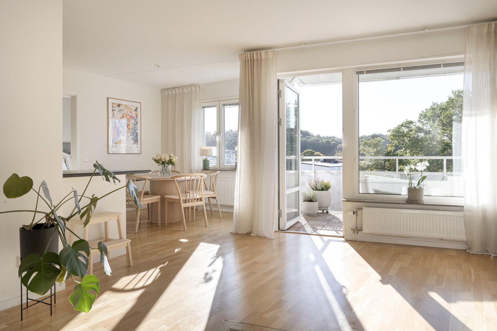 Modern genomgångstrea erbjuds nu på populära Sankt Jörgens Väg 28E. Här har du en välplanerad trea om 81 kvm med en social och öppen planlösning med ljusinsläpp från två väderstreck. Bostaden präglas av genomgående ljusa ytskikt, enhetliga golv och har alla bekvämligheter du kan tänkas behöva i vardagen. Köket är välutrustat samt stilrent med vita fronter och sammankopplas via en bardisk med det rymliga vardagsrummet, perfekt för sociala sammankomster. Stora härliga fönsterpartier skänker gott ljus och de sociala ytorna förlängs av balkongen som ligger i solsäkert sydväst läge med utsikt mot den lummiga gården, helt utan insyn. Vidare har du ett helkaklat badrum med golvvärme och egen tvättavdelning. Två sovrum varpå ena har en fransk balkong som blickar mot skogen på baksidan och det andra har en ovanligt stor klädkammare i anslutning. Ett förråd tillhör bostaden i separat byggnad.