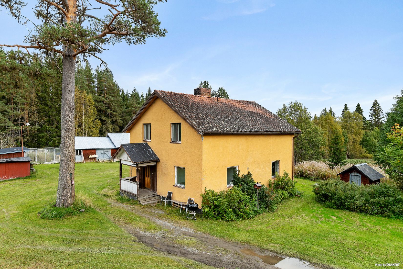 För den bilintresserade finns ett garage med plats för fyra bilar samt flera andra byggnader, inklusive ett gästhus för besökande vänner och familj, ett skotergarage, carport och en vedbod. Dessutom finns ett hundhus, förråd, ett litet timmerförråd samt en jordkällare.