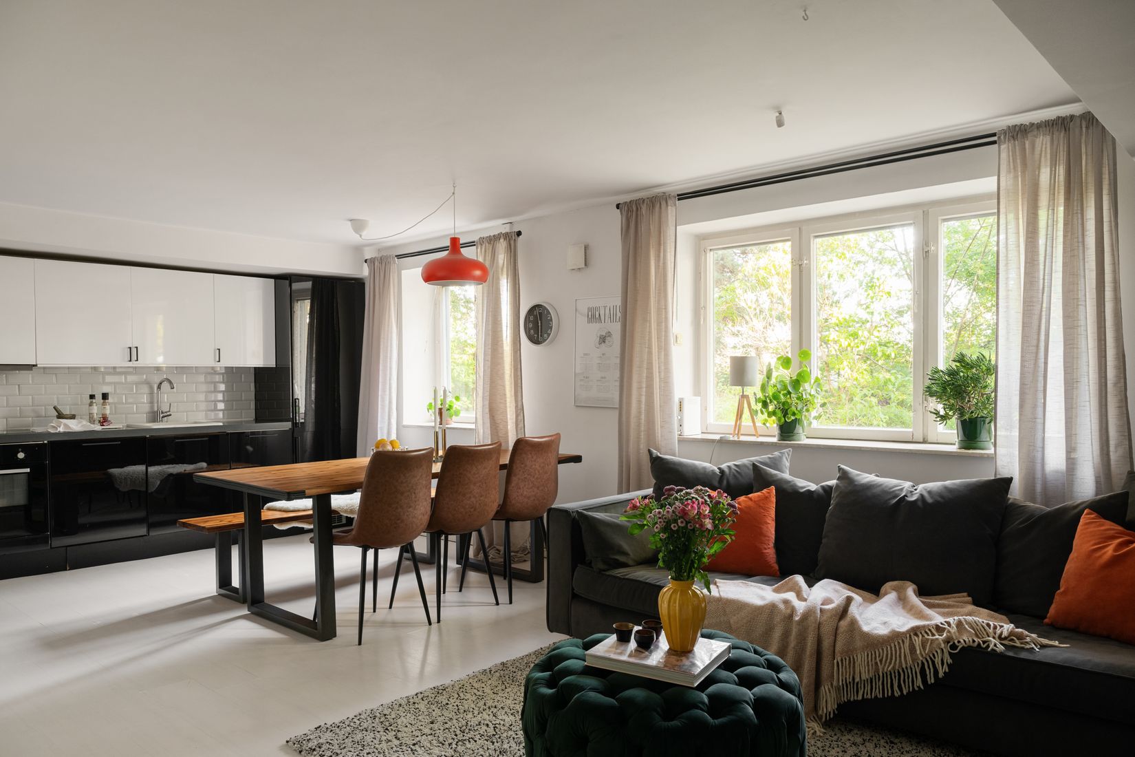 Perfekt boende med endast EN minuts promenad till T-banan Alviks Torg med samtliga tre gröna linjer som snabbt och smidigt tar dig till City på ca 12 minuter. Här finns även Tvärbanan för resa mot Liljeholmen/Sickla eller mot Sundbyberg och Solna. Detta tillsammans med både naturen och Mälarens glittrande vatten endast fem minuter bort ger bostaden det bästa av två världar. Läget så nära Mälaren och alla fina grönområden ger dig både möjligheten för ett dopp i det blå och harmoniska promenader. Lägenheten har öppen planlösning som bjuder på social kontakt mellan kök och vardagsrum. Två ordentliga sovrum där båda rymmer dubbelsäng. Badrum med tvättmaskin. Mycket bra förvaringsmöjligheter med flera garderober och rymligt externt förråd precis intill bostaden. Barnvänliga omgivningar. Stabil förening med välskött fastighet.