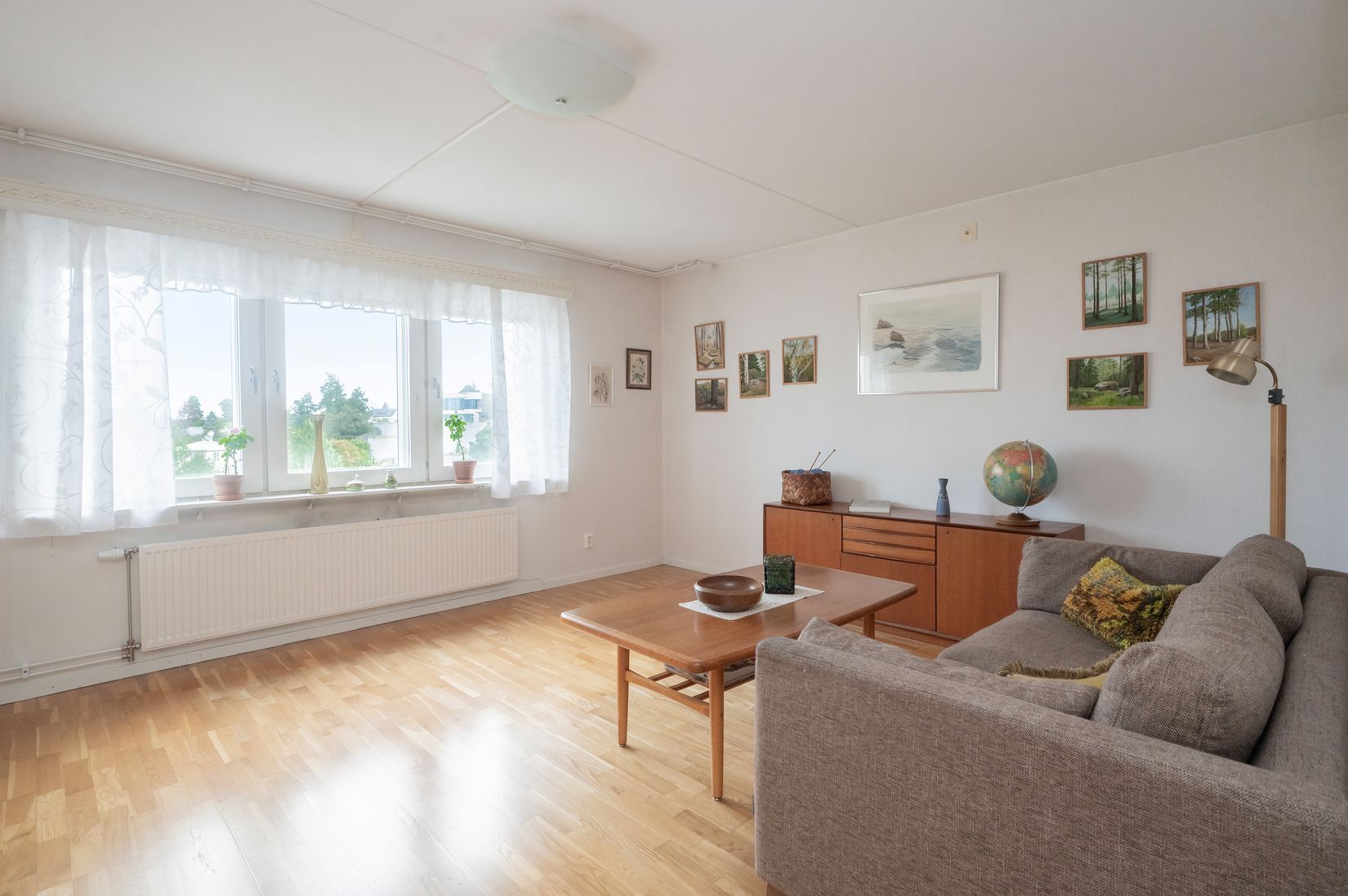 Lägenheten erbjuder ett generöst vardagsrum med fina dubbeldörrar mot köket med plats för stort matbord. Köket är rymligt med fönster mot Stuvsta centrum. Stor hall med gott om förvaring i garderober, rymligt badrum, walk-in closet och sovrum med utgång till den inglasade balkongen.