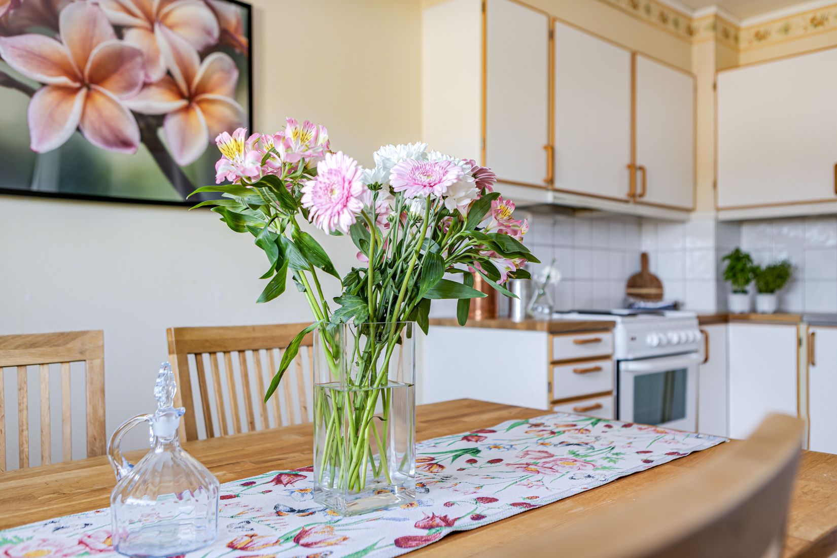 Välkommen hem till en trivsam och välplanerad bostad med ljusa rum, nymålade ytor och en solig balkong med utsikt över föreningens lummiga äppleträdgård. Här får du ett hem där funktion möter hemtrevnad, med gott om förvaring, uppdaterat kök och flera renoveringar som gör att du kan flytta in direkt. Föreningen är stabil och välskött med en belåning på endast 7 538 kr/m² (2023) – en trygg grund för framtiden. Läget är lugnt och familjevänligt med närhet till natur, skolor, bussförbindelser och service, samtidigt som du har utmärkta pendlingsmöjligheter för både arbete och fritid.