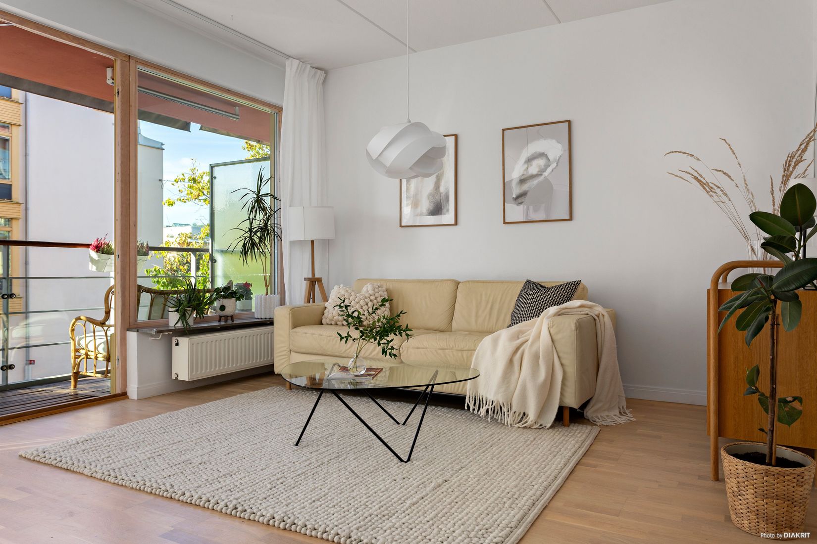 Hela lägenheten präglas av ett rikligt ljusinsläpp från stora fönsterpartier och ett vackert burspråk med utsikt över Hammarby Sjö. Här möts du av ett luftigt vardagsrum i delvis öppen planlösning mot köket, vilket skapar en social yta som blir bostadens naturliga samlingspunkt. Balkongen i soligt söderläge vetter mot en grönskande och lugn gata, perfekt för avkoppling eller härliga stunder med vänner. De två sovrummen ligger i varsitt hörn av lägenheten, avskilda från varandra, vilket ger både integritet och flexibilitet för familj, gäster eller hemmakontor. Badrummet är stilfullt helkaklat med påkostade detaljer som stenskiva och uppvärmd toalettstol. Lägenheten erbjuder även utmärkt förvaring, genomtänkta ytor och en känsla av kvalitet rakt igenom.