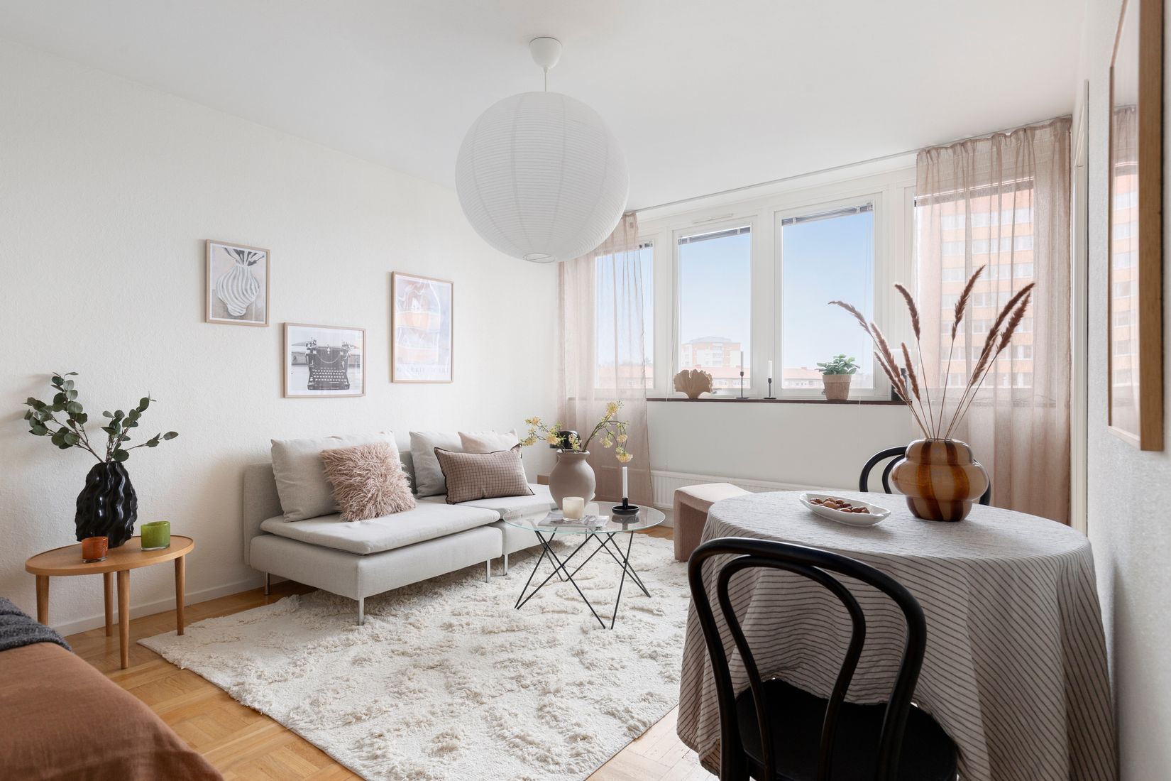 Välkommen till Fagottgatan 4, en stilfull och smart planerad etta på våning 6 - högt upp i huset, utan insyn och med ett fantastiskt ljusflöde från stora fönster i bästa väderstreck. Här bor du i en lugn och trygg del av omtyckta Ruddalen - med naturen runt hörnet och city bara en kort spårvagnsresa bort.