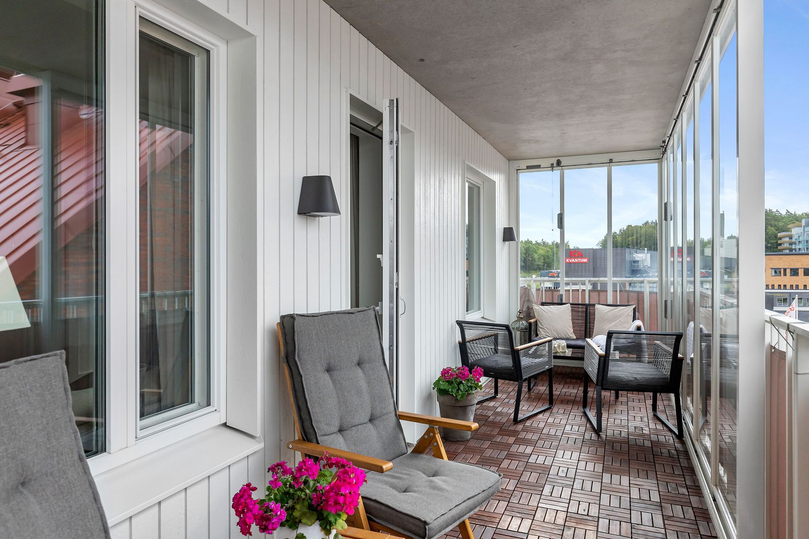 Bostadens självklara samlingspunkt är det stilrena Vedumköket med påkostade materialval och moderna vitvaror. Här finns gott om arbetsytor och naturlig plats för ett stort matbord - perfekt för både familjemiddagar och sociala kvällar. I anslutning ligger det generösa vardagsrummet som bjuder in till avkoppling och samvaro, med direkt utgång till den stora inglasade balkongen. Här förlängs bostaden på ett naturligt sätt och blir en självklar plats att njuta av året runt. Master bedroom är en privat oas med egen klädkammare som erbjuder rikligt med förvaring. De två övriga sovrummen är flexibla och kan enkelt anpassas efter livets olika skeden - barnrum, arbetsrum eller gästrum. Badrummet är fullt utrustat med golvvärme, dusch, tvättmaskin, torktumlare, och kompletteras dessutom av en praktisk gäst-wc.