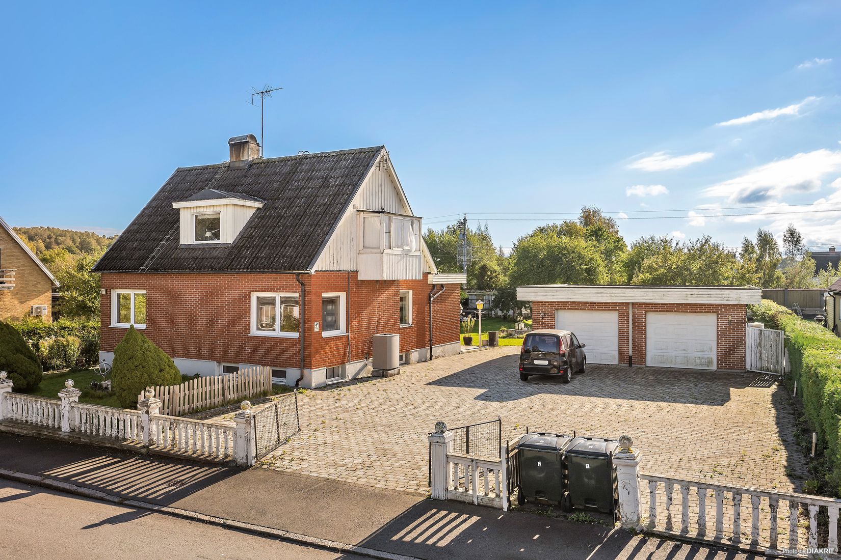 Utomhus finns en stor grönskande trädgård, dubbelgarage och stenlagd uppfart med plats för flera bilar – här finns plats för både lek, odling och avkoppling.