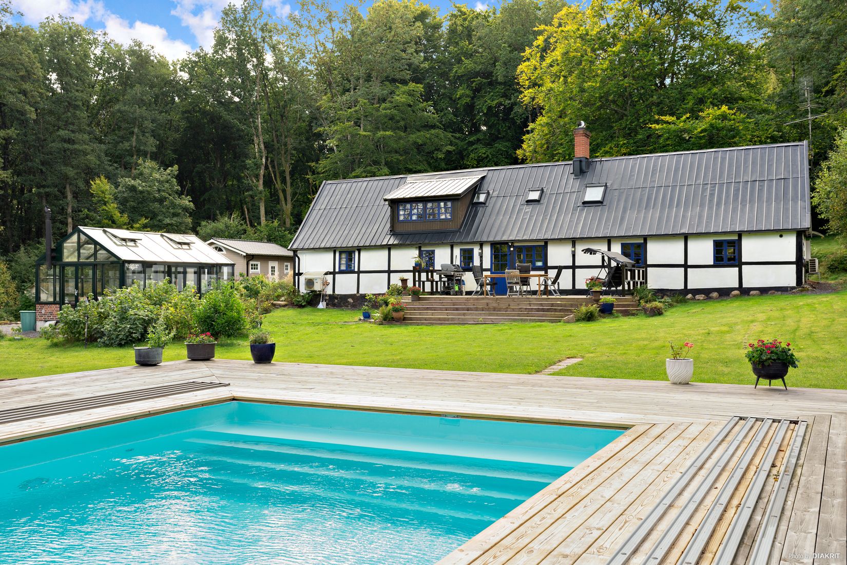 I skogsgläntan som du når via Baråkravägen i utkanten av Mellby ligger denna skånelänga i korsvirke från 1856. Här har nuvarande ägarfamilj skapat ett eget Eldorado men även plats för nära och kära. Förutom den vackra skånelängan finns nybyggt gästhus, orangeri, pool och bastu m m. Naturtomten är stor, nästan 8.000 kvm och förutom det som tidigare nämnts finns nyanlagd damm och även en solcellsanläggning vilket ger låga driftskostnader. Välkommen att boka visning!