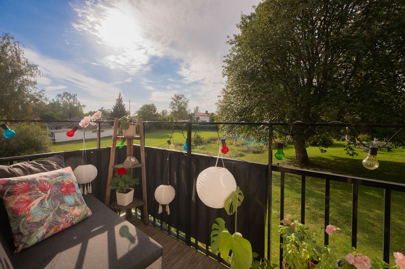 I lägenheten finner vi ett trevligt och smakfullt inrett kök, separat matsalsdel, helkaklat och fint badrum, rymlig sovalkov samt ett underbart vardagsrum med vidare anslutning till balkong med utsikt ut mot grönska och eftermiddags-/kvällssol.