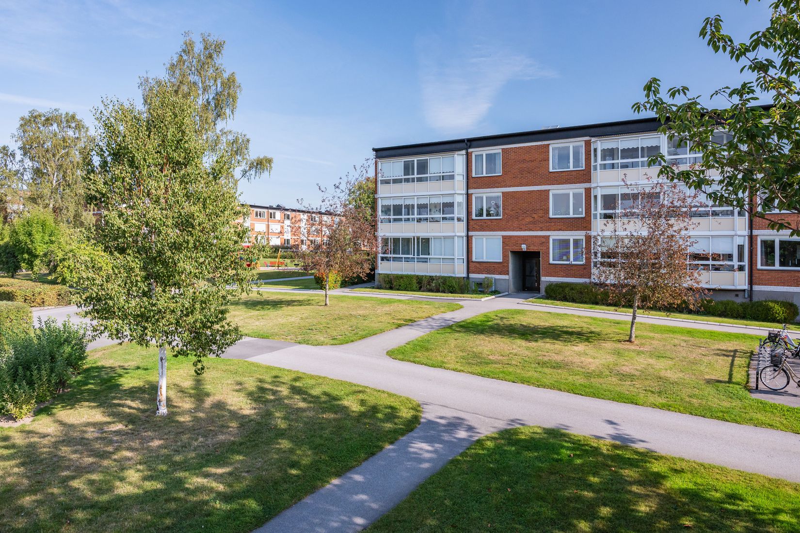 Detta är ett hem där utformningen har planerats noga, vilket erbjuder i en genomgångslägenhet med sociala delar samt separat sovrumsavdelning. Ni finner vardagsrum med utgång till den inglasade balkongen som vetter ut mot den tilltalande gården. Intill detta är köket fullutrustat med Ballingslövinredning samt matplats praktiskt beläget. Vidare finner ni tre bra sovrum som ligger praktiskt avskilda i sovrumsavdelningen tillsammans med den inre hallen som är utrustad med rymliga skjutdörrsgarderober samt duschrum som renoverades 2025 & separat gäst-wc.