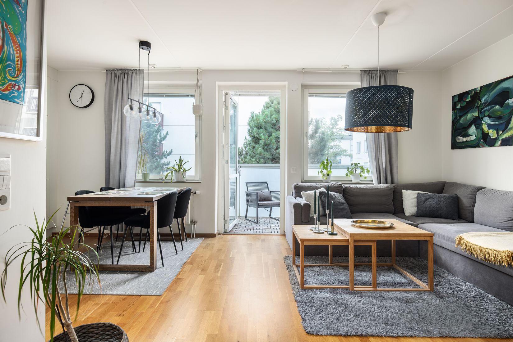 Välkommen till denna välplanerade 2:a med modern standard och trevlig balkong. Lägenheten har ett fint ljusinsläpp och en öppen planlösning mellan kök och vardagsrum som ger en luftig känsla. Köket är stilrent och funktionellt med gott om arbetsyta. Sovrummet är rymligt och det helkaklade badrummet har bra förvaring. Bra förvaringsmöjligheter finns i form av garderober samt ett tillhörande källarförråd. Bostaden är belägen i en omtyckt förening med tillgång till grön innergård och pool.