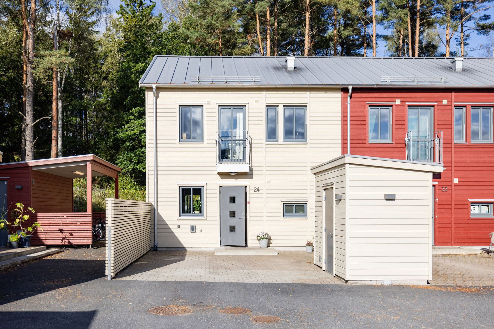 Varmt välkomna till Esters gata 24! Ett fantastiskt fint och påkostat gavel radhus med ett av områdets kanske bästa lägen. Här har säljaren gjort många stilrena och trendsäkra tillval. Härligt gavel-läge och stor altan med sol. Härligt läge i början av området med stor altan som sträcker sig delvis runt huset. Förråd i anslutning som är isolerat. Möjlighet att parkera två bilar framför huset.
