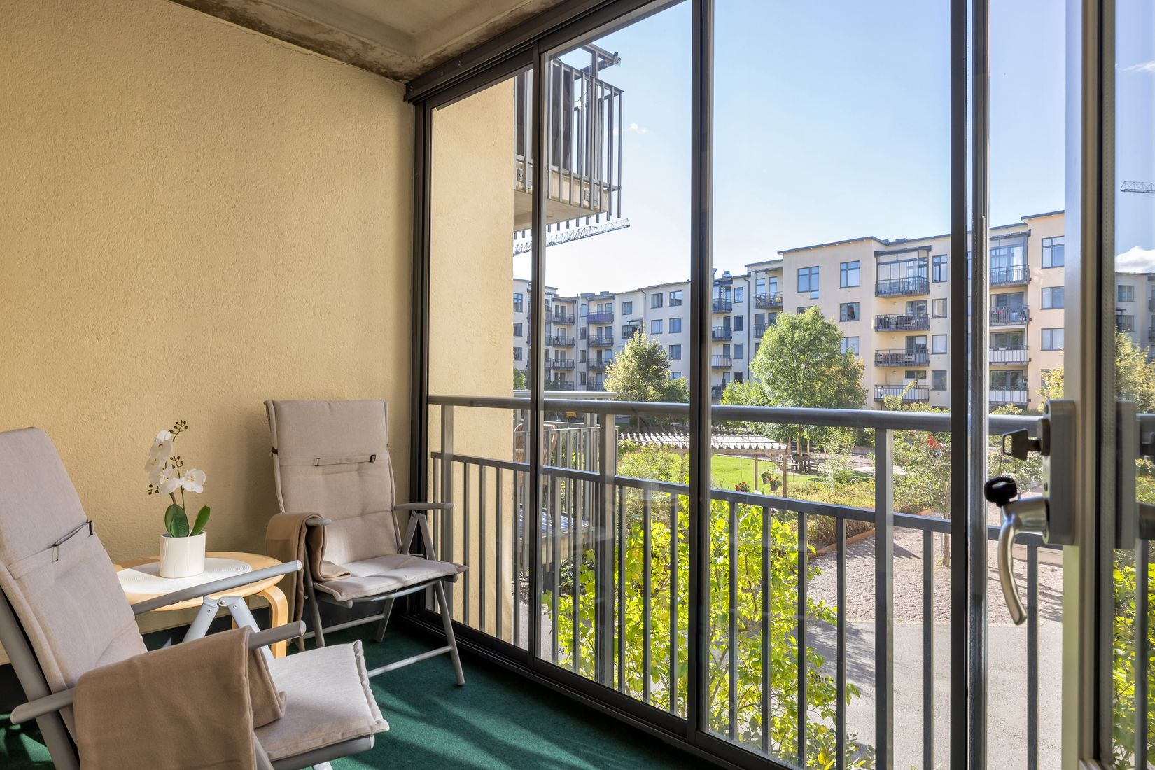 Planlösningen fördelar sig på en inbjudande hall med gott om plats för avhängning och förvaring genom garderober. Vidare in i lägenheten öppnar det ovanligt stora vardagsrummet upp sig - ett ljust och luftigt rum med plats för både en generös soffgrupp och ett större matsalsbord i öppen planlösning mot köket. De stora fönsterpartierna och den franska balkongen ger ett fint ljusinsläpp och skapar en känsla av rymd. Köket är stilrent och funktionellt, med gott om förvaring, bra arbetsytor och plats för en matgrupp invid fönster med de gröna trädkronorna precis utanför. Sovrummet är rofyllt och väl tilltaget med plats för dubbelsäng och önskad möblering samt goda förvaringsmöjligheter genom flertalet garderober. Härifrån når du även den stora inglasade balkongen med eftermiddags- och kvällssol och med vacker utsikt över den lugna innergården - en perfekt plats för avkoppling. Avslutningsvis erbjuds ett stort helkaklat badrum utrustat med b. la. golvvärme, dusch, tvättmaskin.