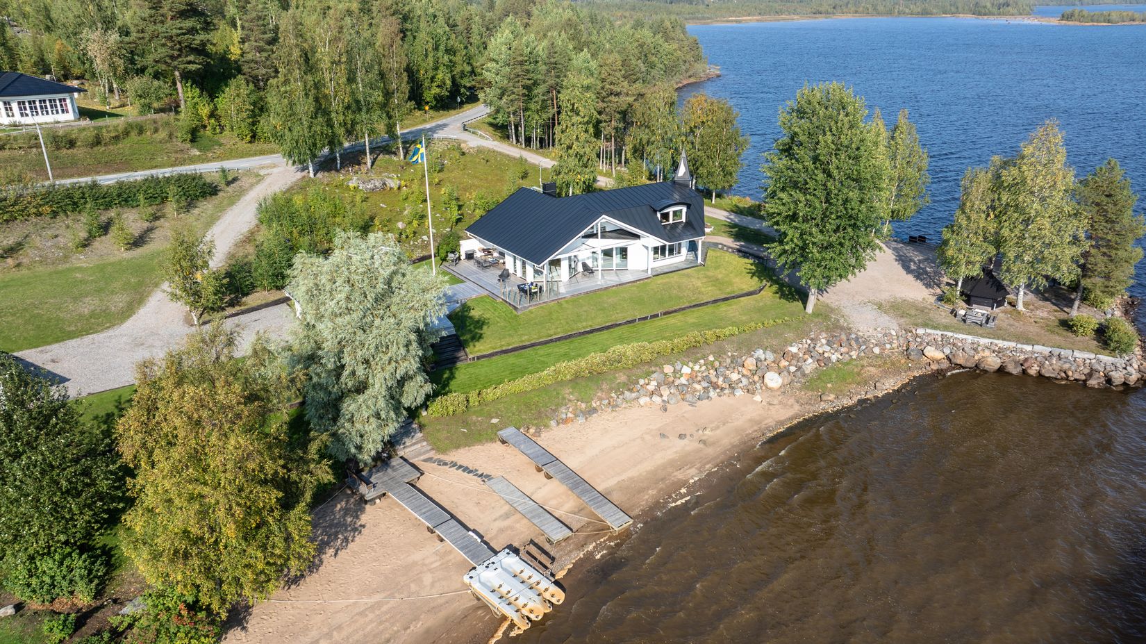 Upptäck en påkostad och arkitektritad villa i Sandviken, Båtskärsnäs där drömmar blir verklighet. På ca 267 kvm finns sex rum och kök, idealiskt för familjen. Storslagen havsutsikt, egen sandstrand och privat hamn för soliga dagar eller båtturer. Här finns generösa umgängesytor på båda våningsplanen. Uppvärmning sker via bergvärme (installerad 2022) gör villan energieffektiv. Fristående garage finns. För avslappning har du en nyrenoverad relaxavdelning med vedeldad bastu. I skärgårdens skönhet är Sandviken, Båtskärsnäs ett paradis för fiskeentusiaster och naturälskare. En plats för livsnjutare nära havet!