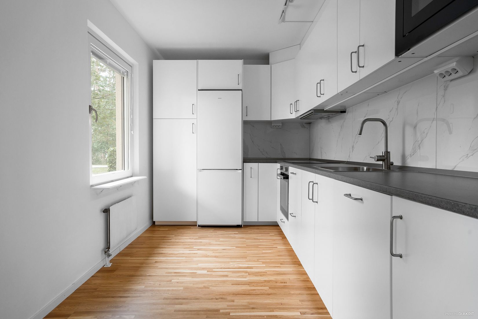Bostaden har genomgående nya golv och väggar i ljusa, stilrena toner som skapar en modern och inbjudande atmosfär. Detta är ett hem för dig som värdesätter hög standard, funktionell planlösning och ett läge där du kan flytta in direkt utan att behöva renovera.