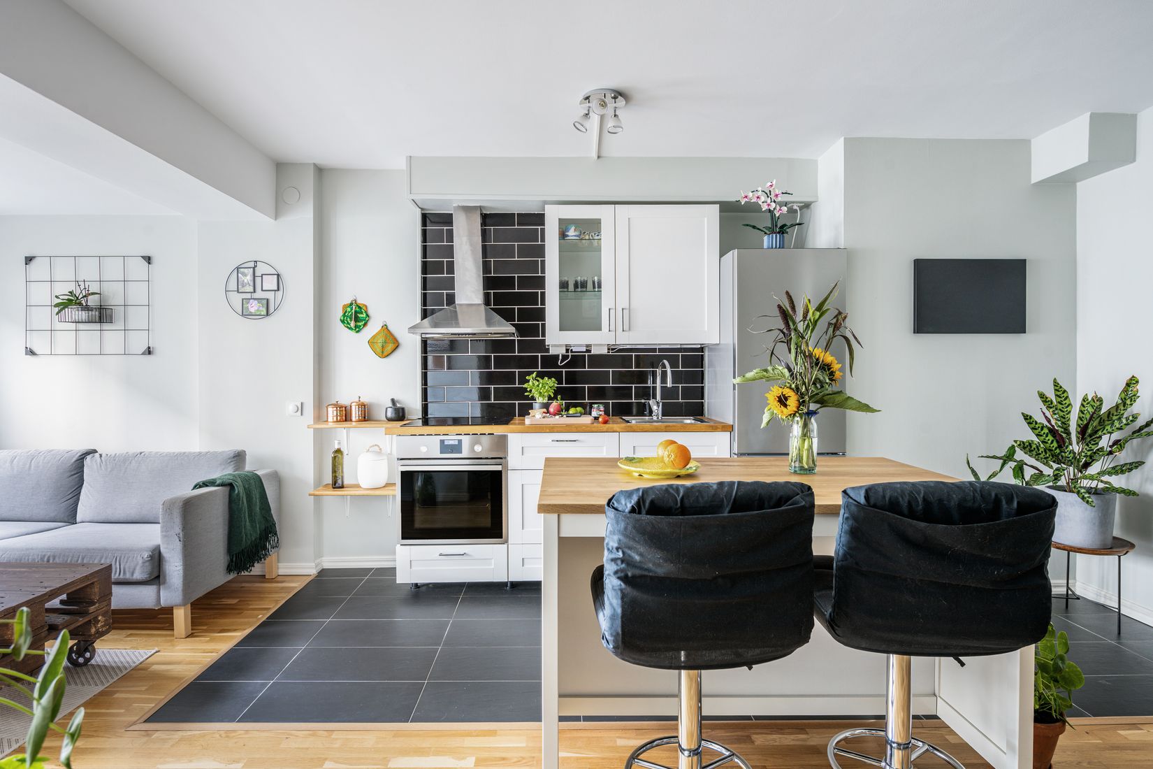 Välkommen till en optimalt planerad lägenhet med fransk balkong i hjärtat av Hallonbergen. Här möts du av ett hem som genomsyras av ljus, stilrena materialval och en social planlösning där vardagsrum och kök harmoniskt förenas. De stora fönsterpartierna låter dagsljuset strömma in och förstärker känslan av rymd och elegans. Det generösa vardagsrummet rymmer både soffgrupp och matplats och blir en självklar samlingspunkt för middagar och umgänge.