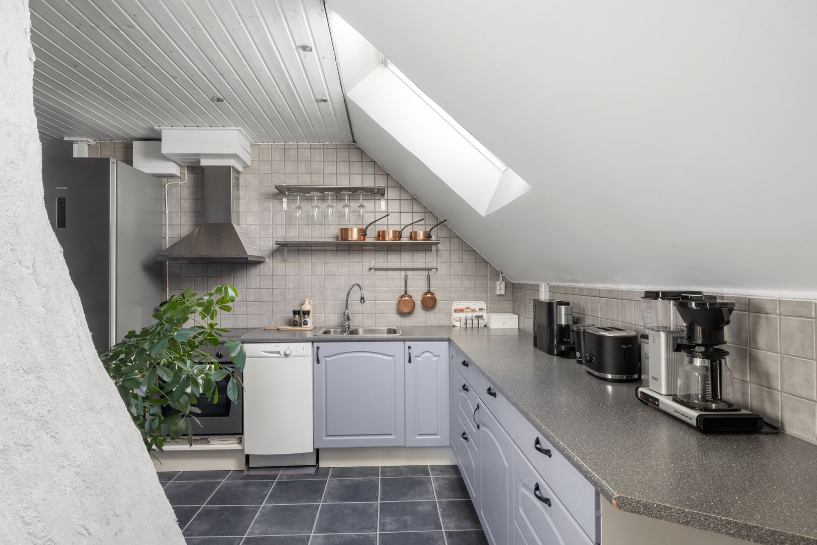 Högst upp i ett vackert hus från 1918 finner du denna unika vindsvåning om 1 rok, 45 kvm boarea samt ytterligare 15 kvm biarea. Här bor du insynsskyddat med ett härligt ljusflöde från både allrummet och takfönster i köket – en bostad som verkligen skiljer sig från mängden.