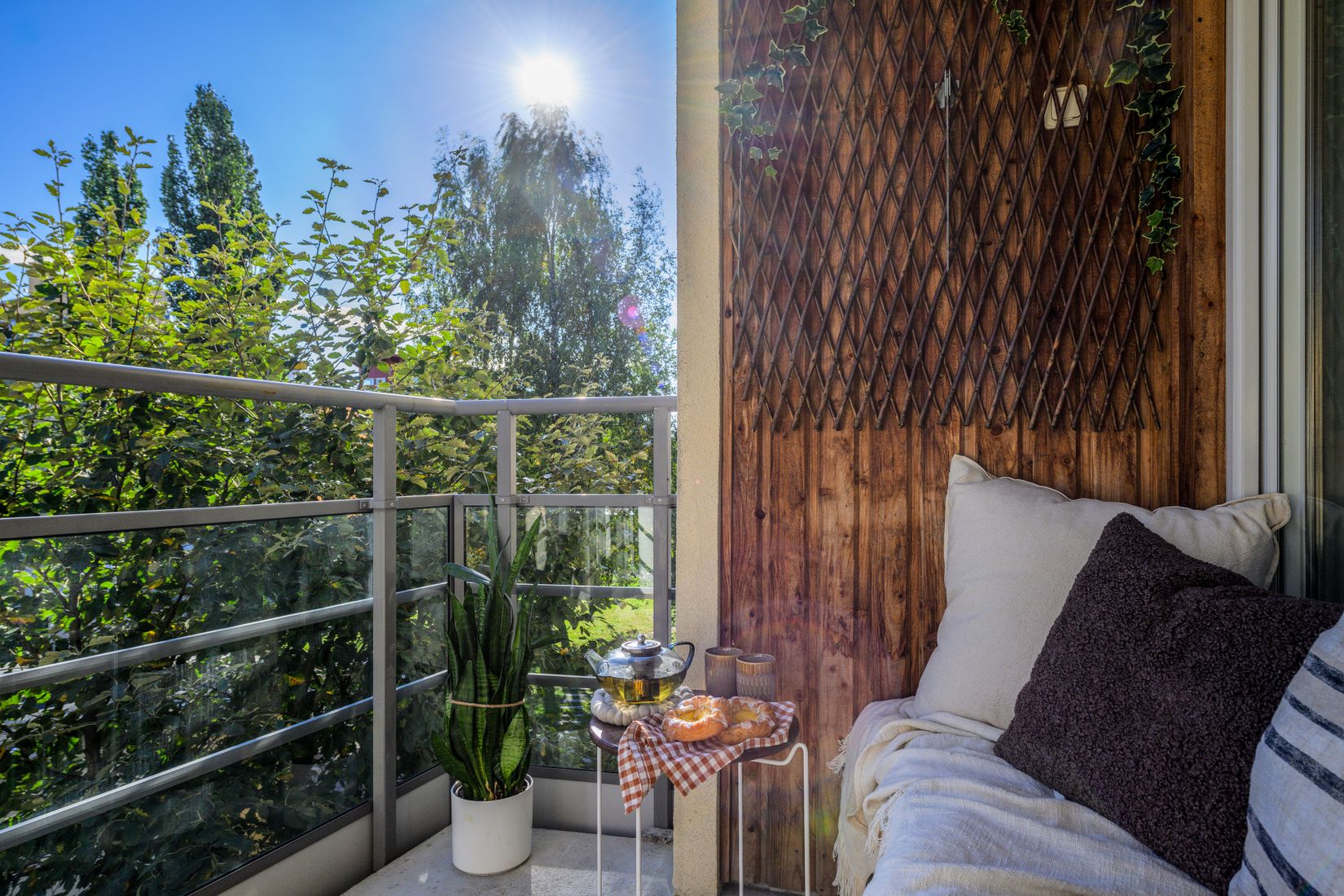 Den härliga balkongen som ni når från vardagsrummet förlänger sommaren och blir snabbt en favoritplats från vår till höst. Här kan ni njuta av morgonkaffet i solen med en bra bok!