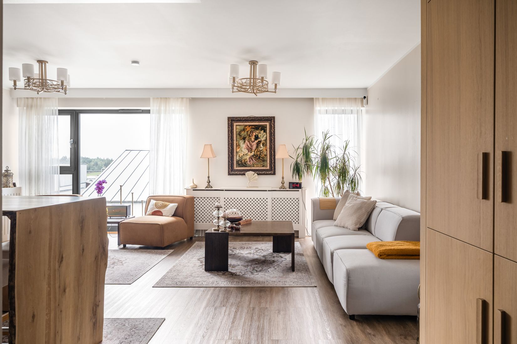 Det arkitektritade bostaden är designat för att maximera både rymd och ljus. Den öppna planlösningen mellan kök och vardagsrum skapar ett stilrent, luftigt och socialt hem. Stora fönsterpartier släpper in ett vackert ljusflöde som förstärker känslan av rymd och närhet till naturen.