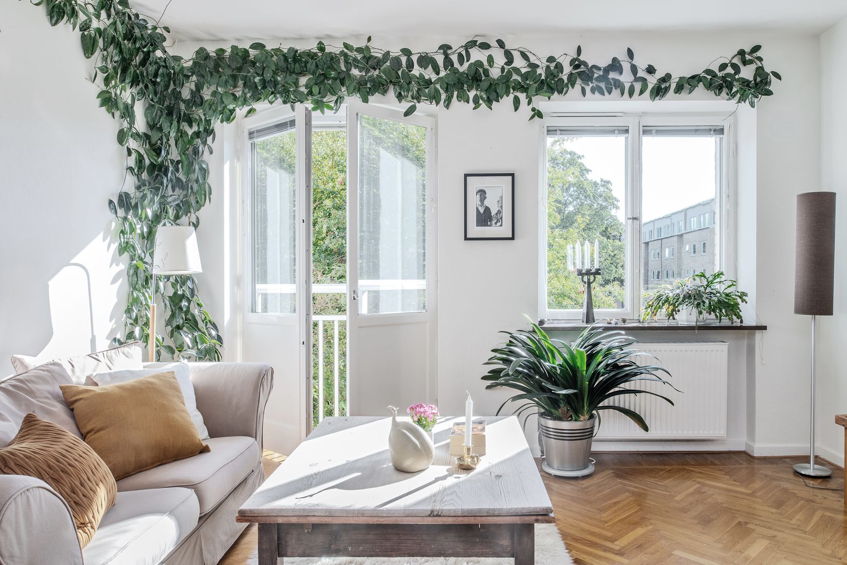 På andra våningen väntar denna charmiga hörnlägenhet som bjuder på både rymd och hemtrevnad. Här blickar du ut över den lummiga gården som har en rofylld utsikt som ger hemmet en extra trivsam känsla. Lägenheter erbjuder en stor balkong och även en fransk balkong. Bostaden har vackra originalgolv i både fiskbensparkett, kalksten och rutig träparkett som sätter karaktär och tidstypisk charm. Planlösningen rymmer två bra sovrum, ett generöst kök med matplats, ett badrum och gott om förvaring tack vare flertalet garderober. En välplanerad lägenhet med ljus, charm och funktion, perfekt för den som söker ett hem att trivas i.