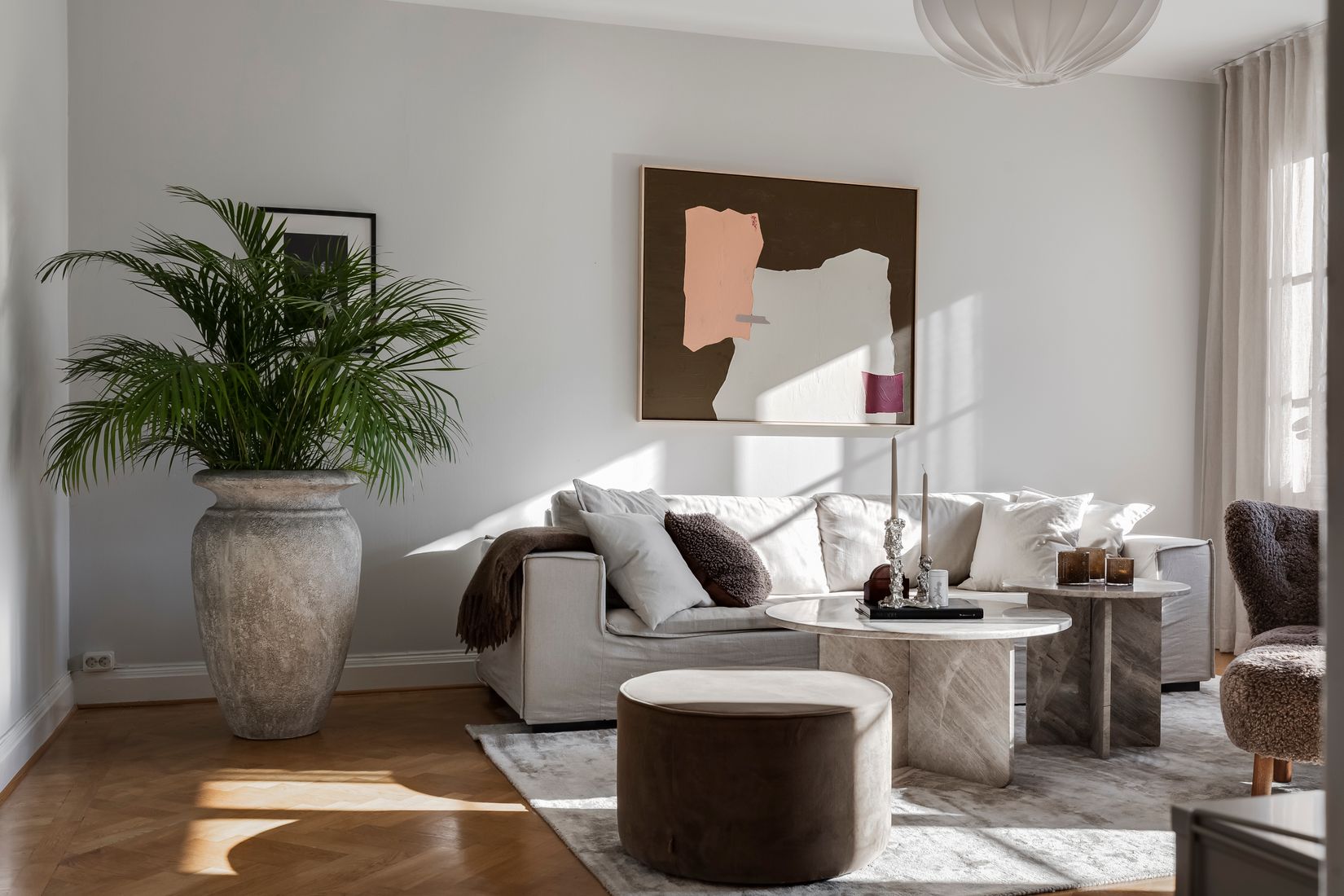 Utöver de sociala ytorna erbjuds ett rofyllt sovrum med bra förvaringslösningar samt ett helkaklat badrum i tidlöst utförande.