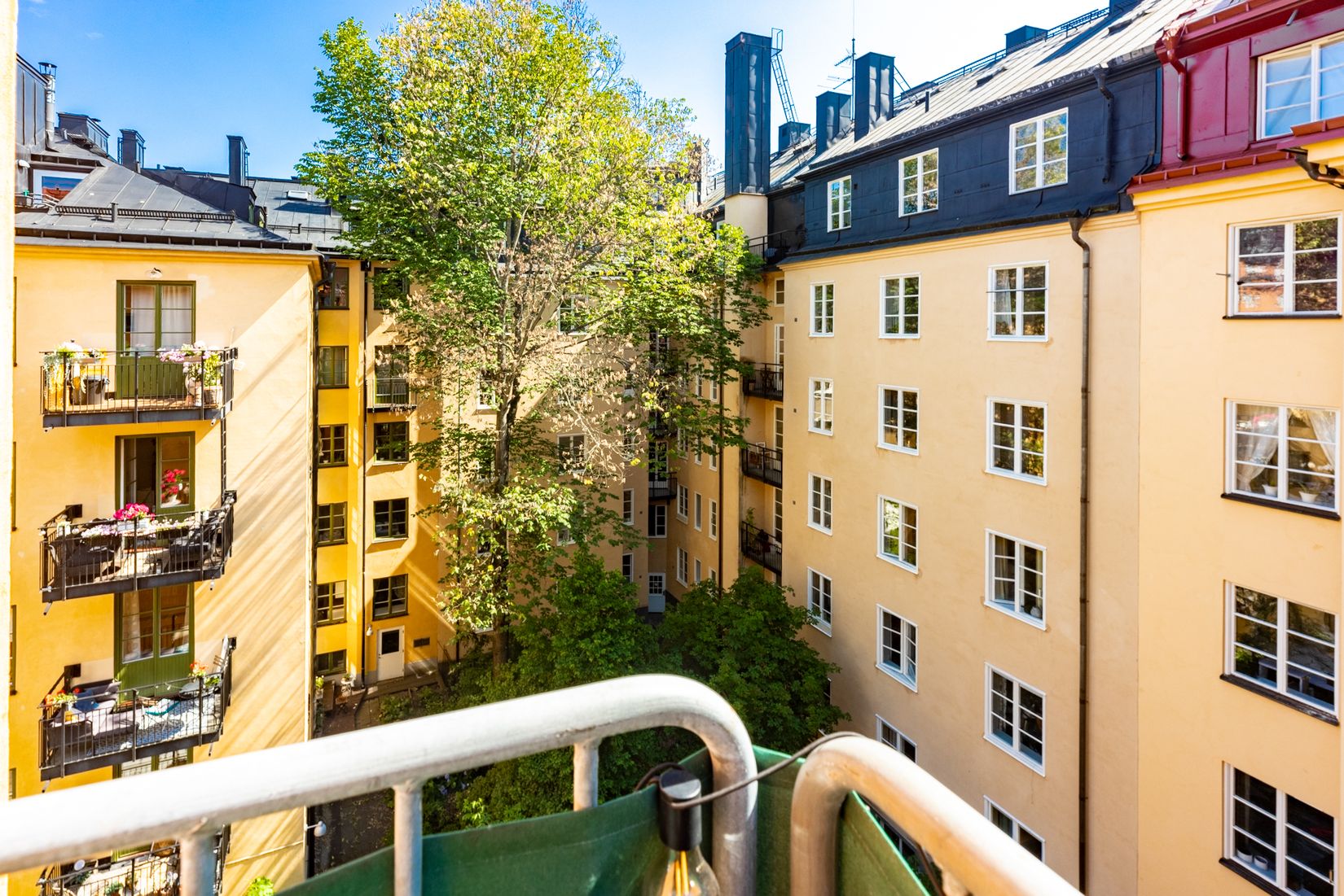 Från den mysiga balkongen högst upp i huset njuter du av sol från morgon till kväll och en härlig utsikt över föreningens grönskande innergård. Det höga och genomgående läget, med fönster i två väderstreck, ger bostaden ett fantastiskt ljusinsläpp. Till lägenheten hör dessutom ett stort och praktiskt förråd i samma hus.