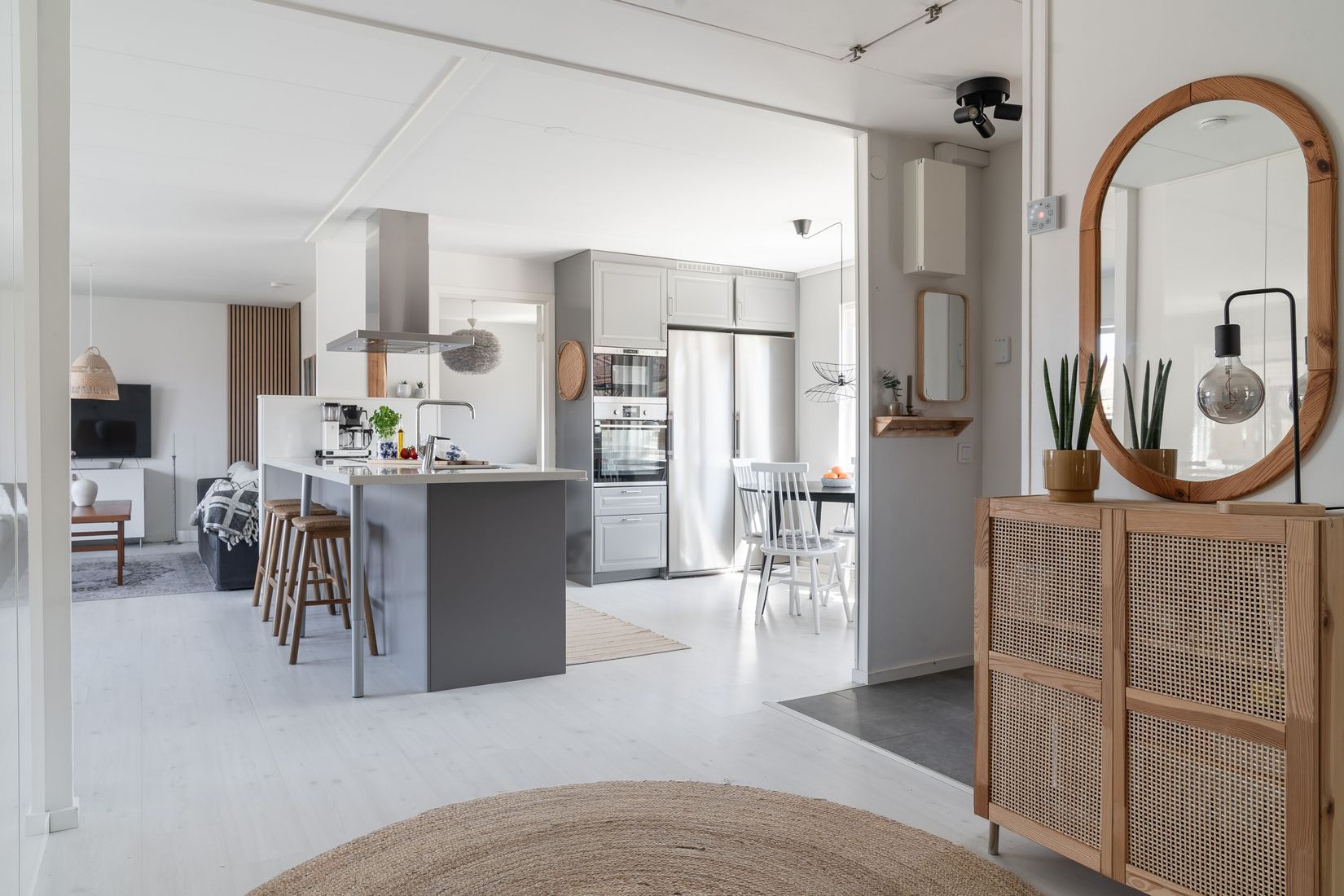 Här finner du ett hem som kombinerar modern design, praktisk funktion med ett lugnt och barnvänligt läge. Här kan du njuta av ett bekvämt liv i en stilfull och fräsch miljö, perfekt för dig som värdesätter kvalitet och trygghet. Med en öppen och modern social yta mellan kök och vardagsrum, ett badrum, en gästtoalett, tvättstuga samt fyra sovrum av varierande storlek är detta ett hem där hela familjen kan rymmas och trivas. Här erbjuds även en generös uteplats med både trädäck med plats för olika typer av möblering samt gräsmatta för de små med spring i benen. Ett hem som helt enkelt erbjuder något för alla!