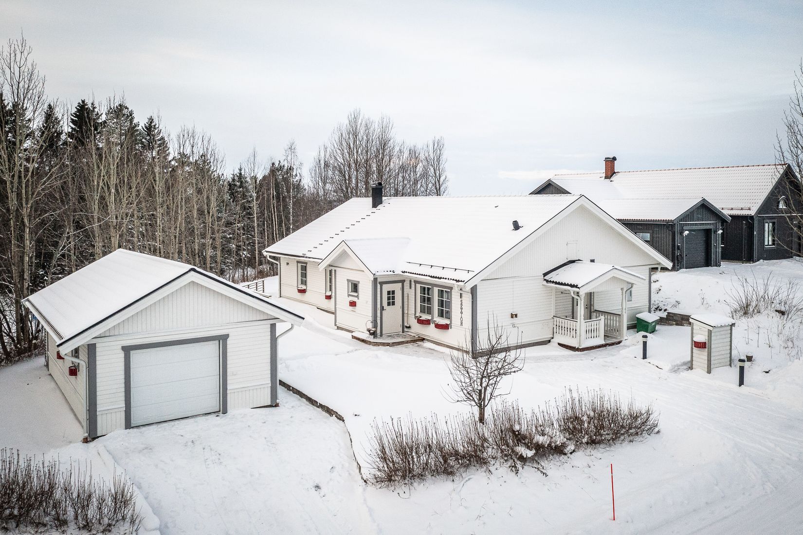 Köket är ljust och inbjudande med delvis öppen planlösning och huset rymmer vidare fyra sovrum, ett allrum och ett vardagsrum – perfekt planerat för familjens gemensamma stunder och avskildhet när det önskas. Den praktiska groventrén leder direkt in till tvättstugan, vilket underlättar vardagslogistiken. Det stora badrummet är något utöver det vanliga, med både bastu och spabadkar – en plats för avkoppling efter en dag på jobbet eller en tur i skidspåren.