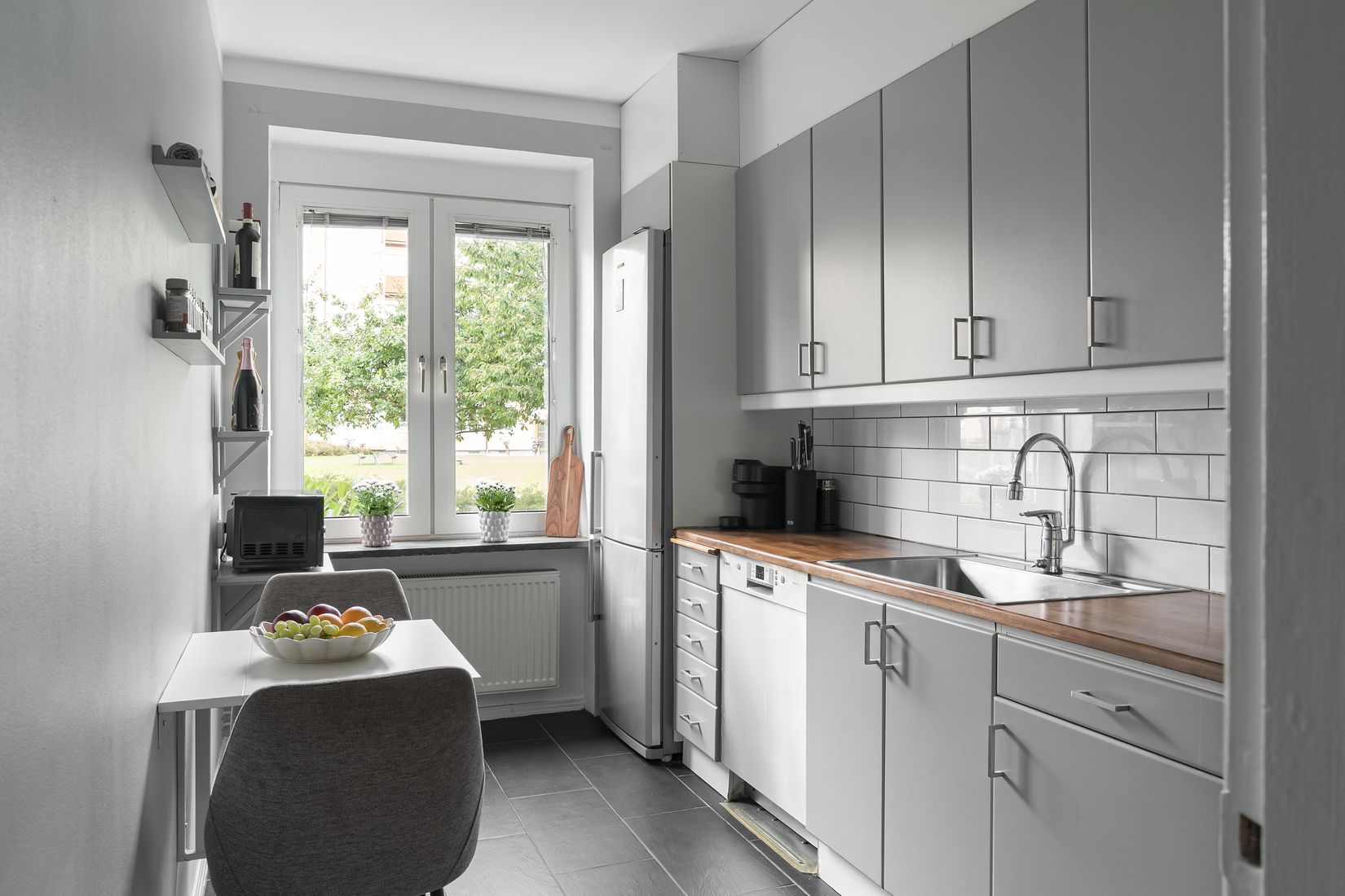 Den här lägenheten är genomgående, vilket ger en ljus och luftig känsla. Med en yta som är optimalt utnyttjad, är varje kvadratmeter välplanerad för maximal komfort och funktionalitet. Lägenheten består av ett rymligt vardagsrum som välkomnar naturligt ljus genom stora fönster. Det separata köket är fullt utrustat med alla nödvändiga apparater och gott om förvaringsutrymme. Sovrummet är lugnt och avslappnande med plats för en stor säng och förvaringsmöjligheter. Bostaden har under det senaste året fått en ordentlig upprustning med nyslipade golv i både vardagsrum och sovrum, nymålade väggar i hela lägenheten och lika så luckorna i köket.