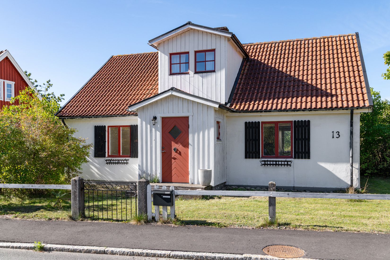 Huset har en hemtrevlig exteriör med vit fasad, vackra röda detaljer och ett klassiskt tegeltak. Den lilla förträdgården ramas in av ett staket och ger ett inbjudande första intryck. Köket är ljust och funktionellt med generösa arbetsytor, gott om förvaring samt charmigt rutigt golv. I anslutning till köket finns en matplats som passar utmärkt för familjemiddagar eller härliga stunder med vänner. Vardagsrummen har charmiga synliga takbjälkar och fönster som släpper in rikligt med ljus. Här finns plats för både umgänge och avkoppling i en trivsam miljö.
